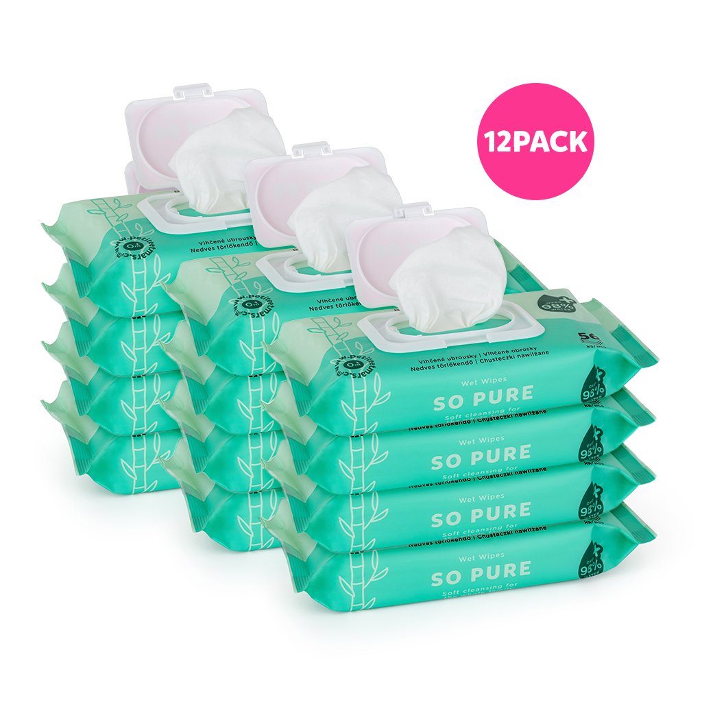 12x PETITE&MARS Obrúsky vlhčené SO PURE bambusové bioodbúrateľné 56 ks (672 ks)