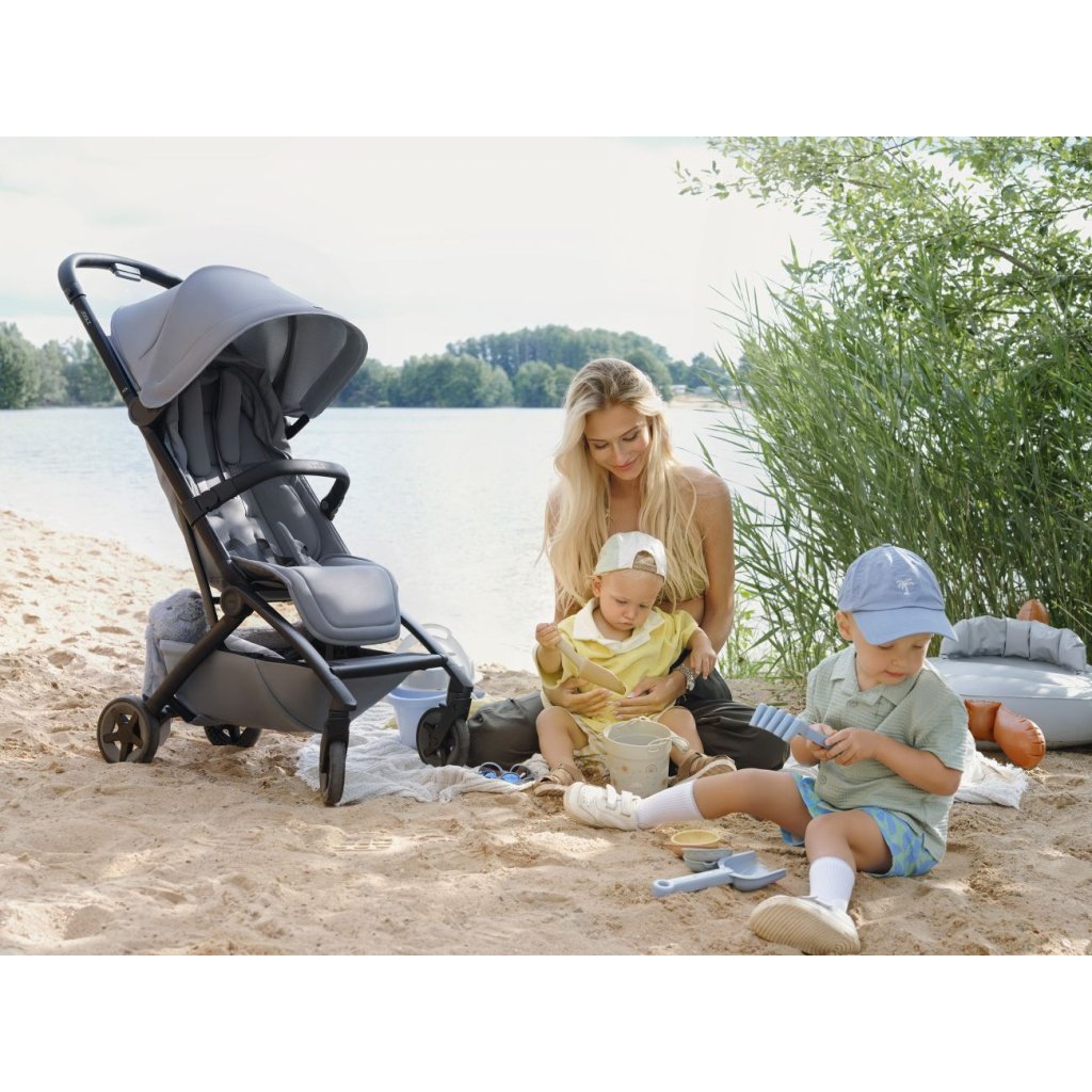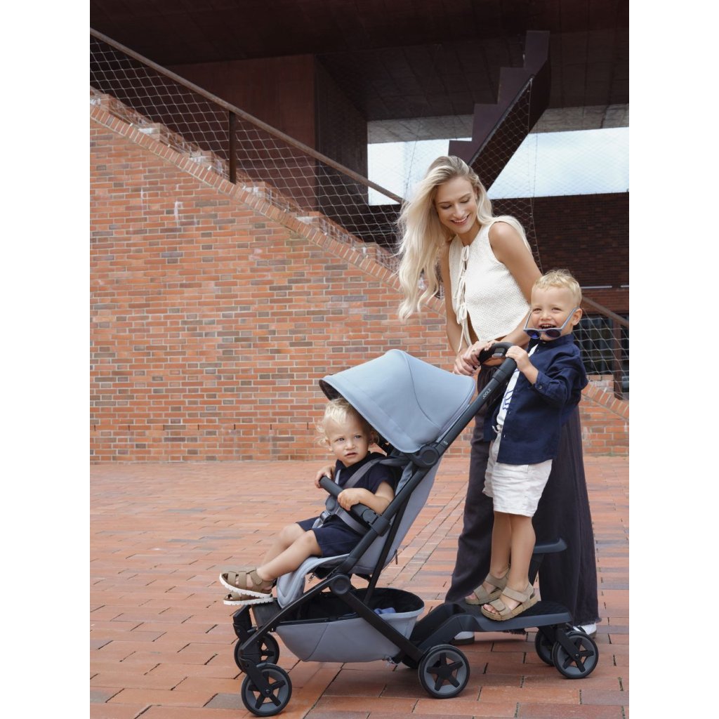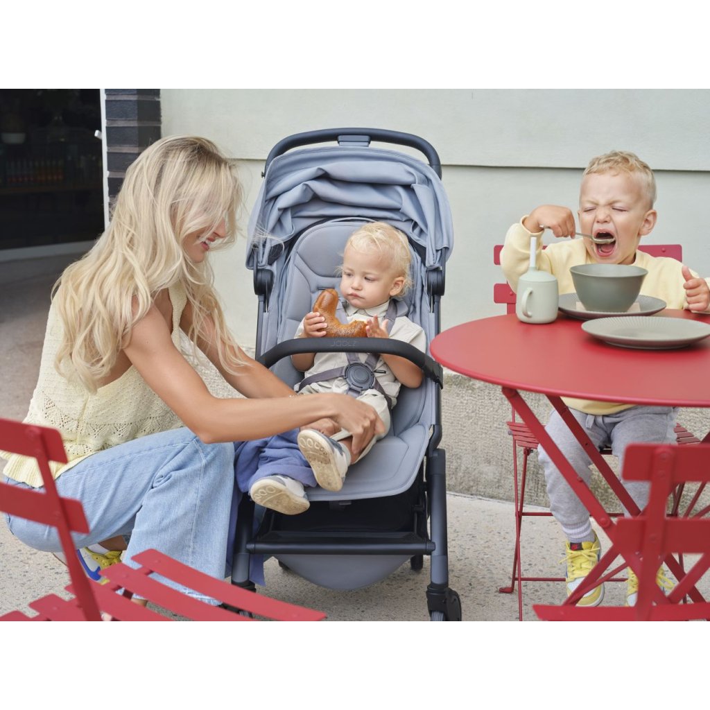 Jeho superľahká konštrukcia zaisťuje pohodlné prenášanie, zatiaľ čo integrovaná opierka nôh nastaviteľná jednou rukou a nový systém pásov poskytujú maximálne pohodlie pre dieťa. Priestranný košík s kapacitou 8 kg pojme všetko potrebné na celý deň a vylepšené kolieska so štvor-kolesovým odpružením zaisťujú plynulú a stabilnú jazdu - či už prechádzate rušnými ulicami alebo spěcháte na letisko.