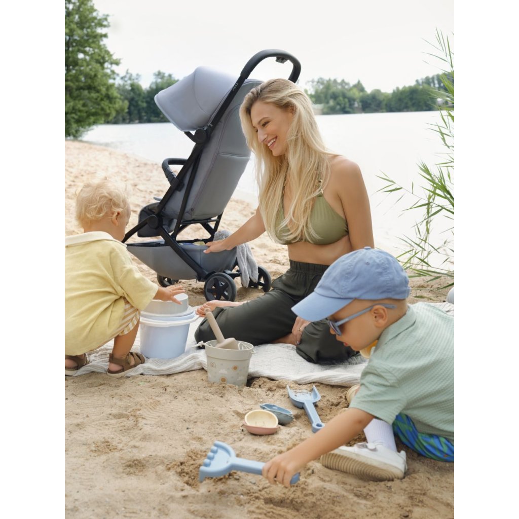 Od júla 2025 bude možné kombinovať ho aj so skladacou vaničkou. Aj s nasadenou vaničkou zostáva kočík kompaktný a ľahko skladateľný - bez kompromisov na pohodlie.