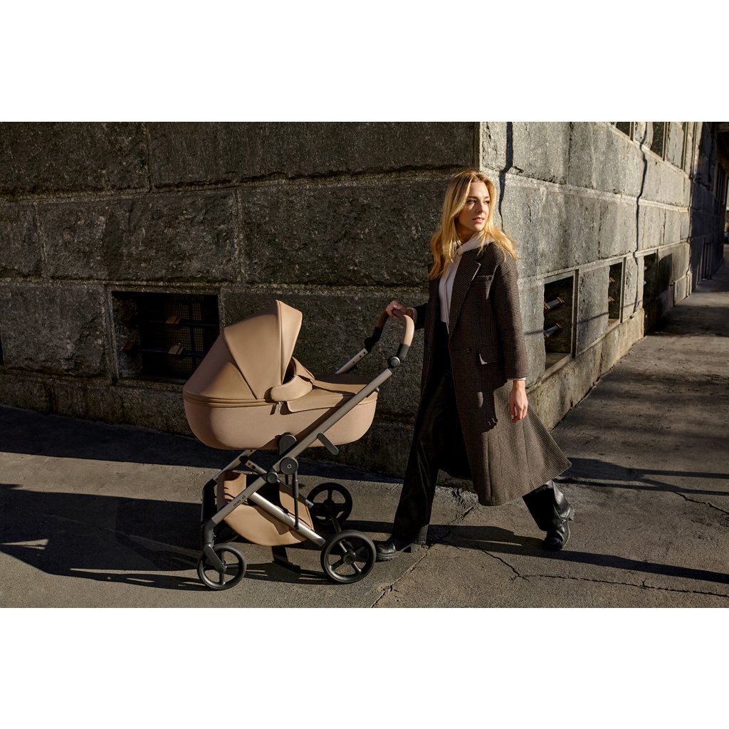 Anex Eli je vytvorený s ohľadom na ergonómiu, aby zabezpečil rodičom nekompromisný zážitok z dizajnu a funkčnosti. S ekokožou pôsobí kočík prirodzene a úžasne elegantne. Malé, ale pevné kolesá zaisťujú plynulý pohyb po meste, zatiaľ čo kompaktná a praktická taška obsahuje všetky potrebné veci pre rodičov a deti pri cestovaní.