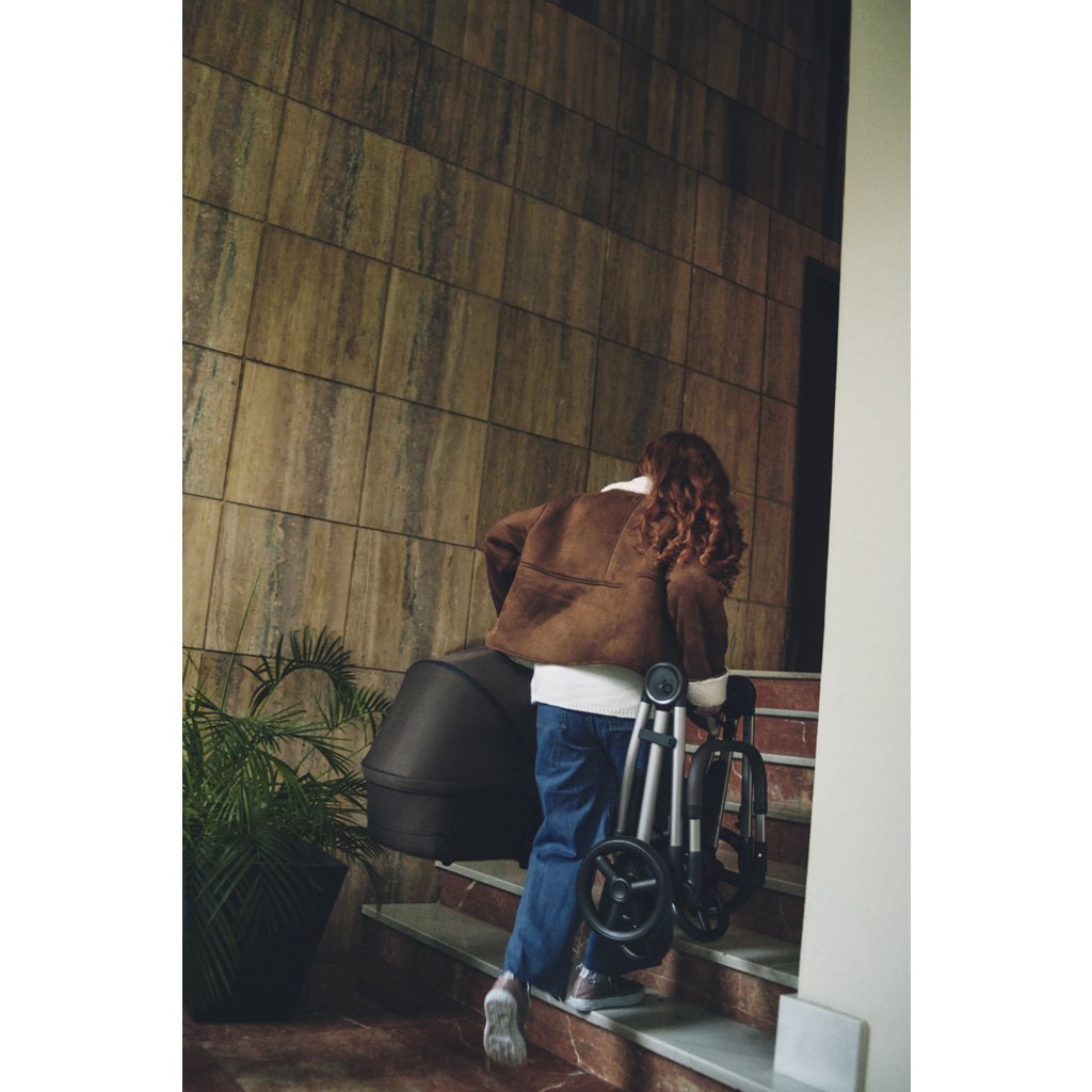 Maximálna kompaktnosť, aby sa zmestil do auta, lietadla a dokonca šetrí miesto v domácnosti. Rám zložíte spolu so sedacou jednotkou v oboch smeroch a vaničku dokonca zložíte do veľkosti príručnej batožiny. Ľahká konštrukcia umožňuje prenášať kočík jednou rukou, či už v každodennom živote alebo na medzinárodných cestách.
