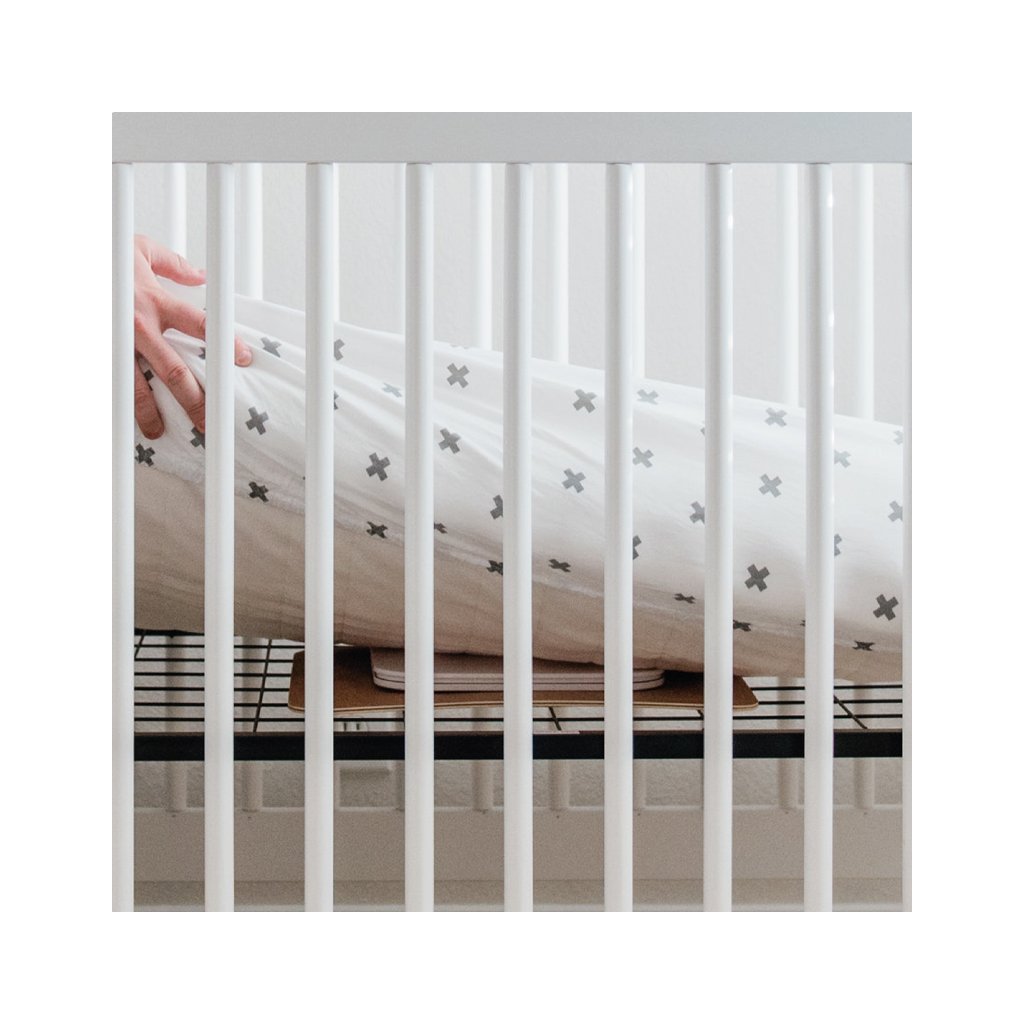 Drevenú podložku umiestnite pod senzorovú podložku aby ste zaistili správnu funkciu senzorovej podložky - ktorá je tak bezpečne umiestnená a nehrozí riziko jej vypadnutia medzi roštami postieľky.