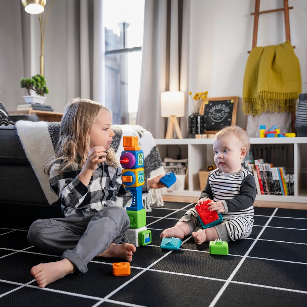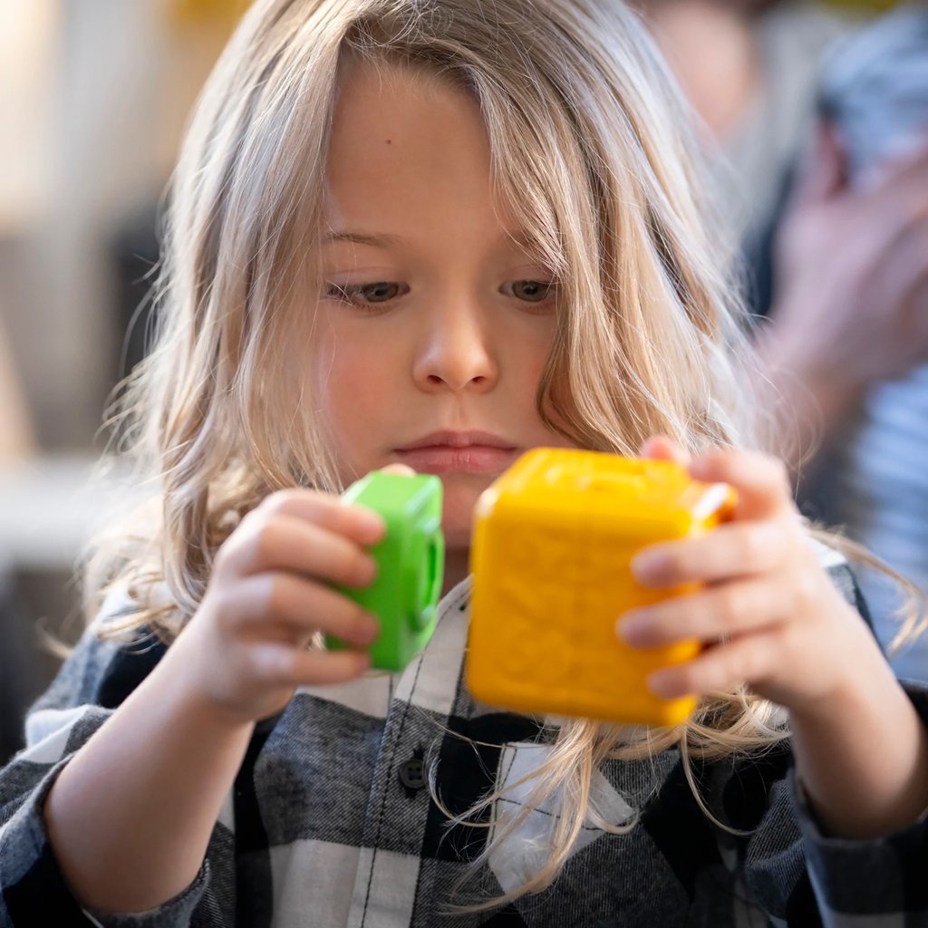 15- dielna sada s multisenzorickými kockami s veľkosťou 7,62 cm zaujme každé dieťatko. Jednotlivé kocky, stavebné bloky a nástavce zapájajú bábätká a batoľatá do kreatívnej hry, nech sú kdekoľvek. Každá kocka sa magicky spája so skrytými, bezpečnými magnetmi, ktoré zaisťujú bezpečnosť dieťatka a zároveň učia príčinu a následok. Pospájajte časti dohromady, aby ste dosiahli potrebné kliknutie a uchvátili dieťa skladaním a spájaním. Deti budú radi triediť a spájať veľké, ľahko uchopiteľné bloky, čím si rozvíjajú jemnú motoriku. Batoľatá sa môžu učiť zvieratá, farby a písmená alebo sa zapojiť do spoločnej hry s priateľmi a súrodencami pri stavaní vlastných majstrovských diel.