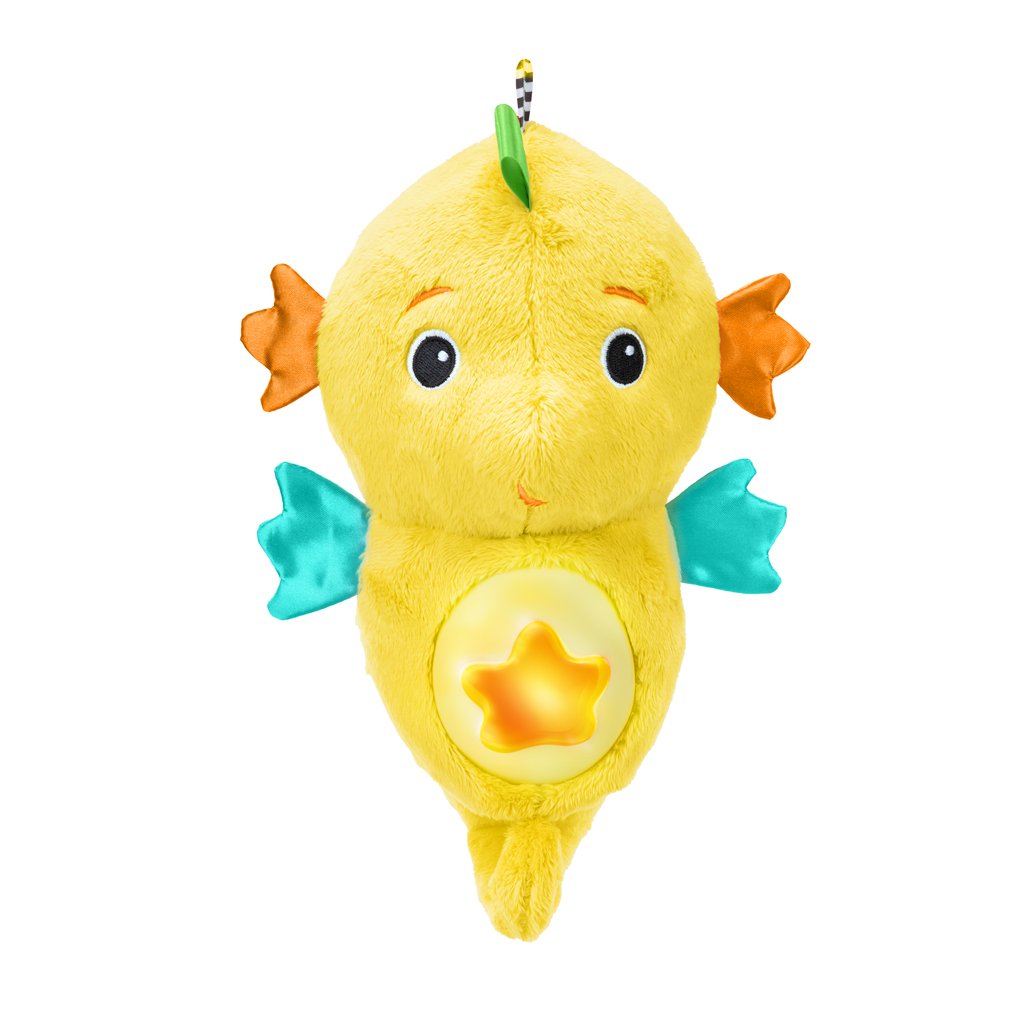 Vďaka technológii reakcie na plač reaguje morský koník na plač dieťaťa – automaticky spustí až 7 minút melódií alebo zvukov oceánu. Dieťatko sa môže naučiť samé upokojiť – stačí jemne stlačiť hviezdičku na brušku koníka, a ten zažiari jemnými farbami (až 5 odtieňov) alebo prehrá až 15 minút klasickej hudby či prírodných zvukov. Na brušku sa nachádza aj držiak na cumlík, aby mal drobček svoj obľúbený cumlík vždy po ruke. Navyše má koník pestrofarebné stužky, ktoré stimulujú hmat a zrak bábätka. Ideálny darček pre deti už od narodenia. Perfektný tip na darček k narodeniu bábätka.