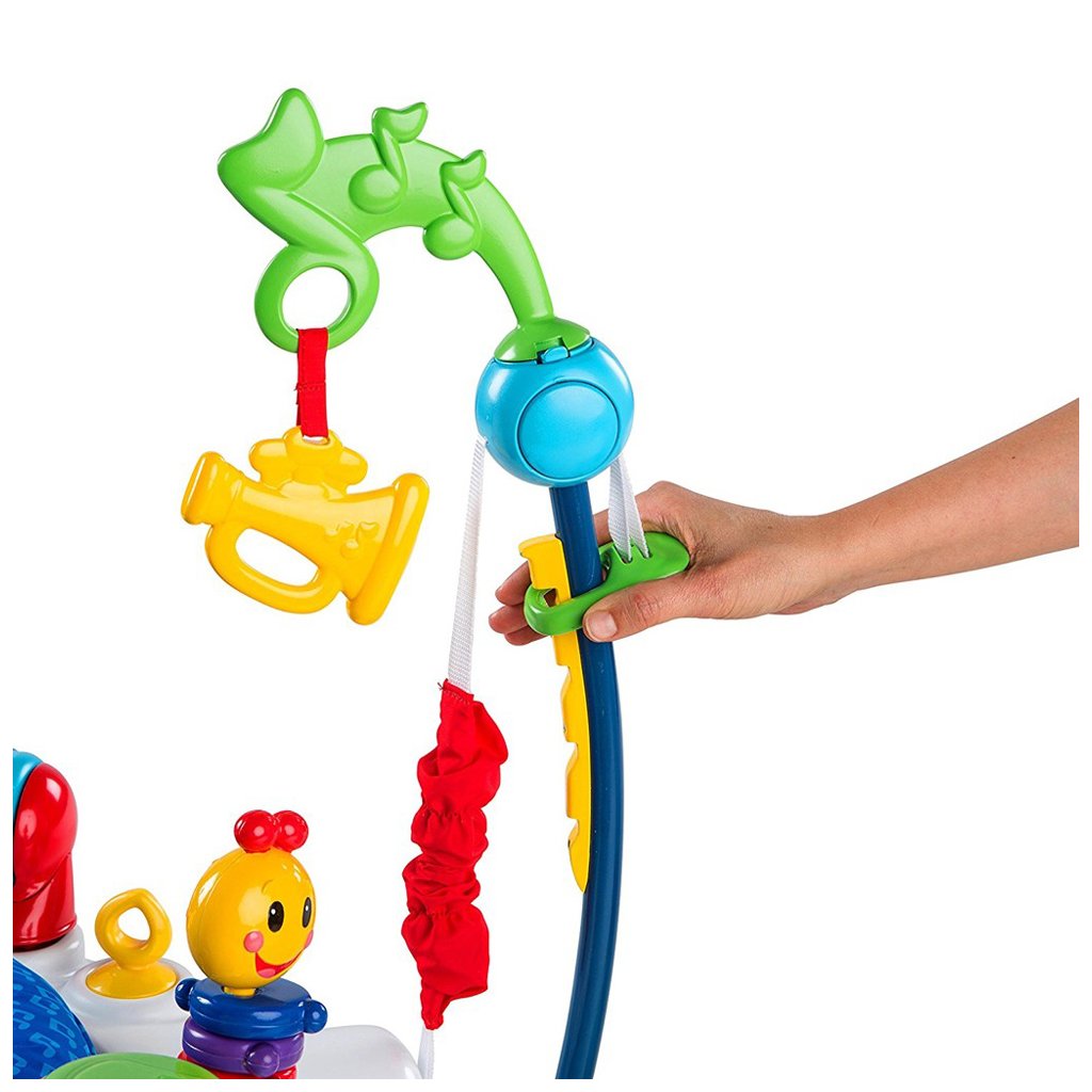 Nechajte hudbu, aby sa stala múzou vášho dieťatka, ktorá z neho spraví malého umelca. Malé rúčky môžu ťukať na elektronické bubny bongo, čím sa aktivujú svetlá, zvuky a viacero jazykov. Dieťatko môže roztočiť klavír v tvare valca pre prekvapivé zvuky alebo zahrať na gitare, čím sa roztancujú farebné korálky. Bezpečné zrkadielko s tamburínou v dieťatku podporuje vnímanie samého seba. Toto jedinečné detské skákadlo sa otáča o 360°, takže váš malý hudobník sa môže medzi jednotlivými aktivitami otáčať a zábava sa nikdy neskončí, nakoľko stále objavuje nové aktivity.