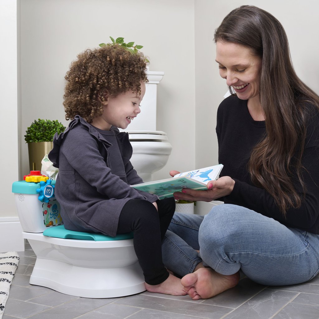 Pomôžte urobiť učenie na nočník jednoduchým, zábavným a odmeňujúcim so systémom na trénovanie na nočník. Tento nočník s postavičkou, ktorá sa objaví pri použití, realistickými zvukmi splachovania a melódiami a ideálnymi rozmermi si obľúbia deti od 18 mesiacov, ktoré sa učia používať toaletu ako veľké deti! Keď sa dieťa vyciká, objaví sa v nočníku postavička, ktorá oslávi jeho pokrok. Farebné ozubené kolieska na nádržke sa točia a vydávajú zvuky splachovania zakaždým, keď sa “spláchne”, čo podporuje jemnú motoriku. Má zabudovaný úložný priestor na potreby pri učení na nočník a miska je odnímateľná pre jednoduché čistenie.