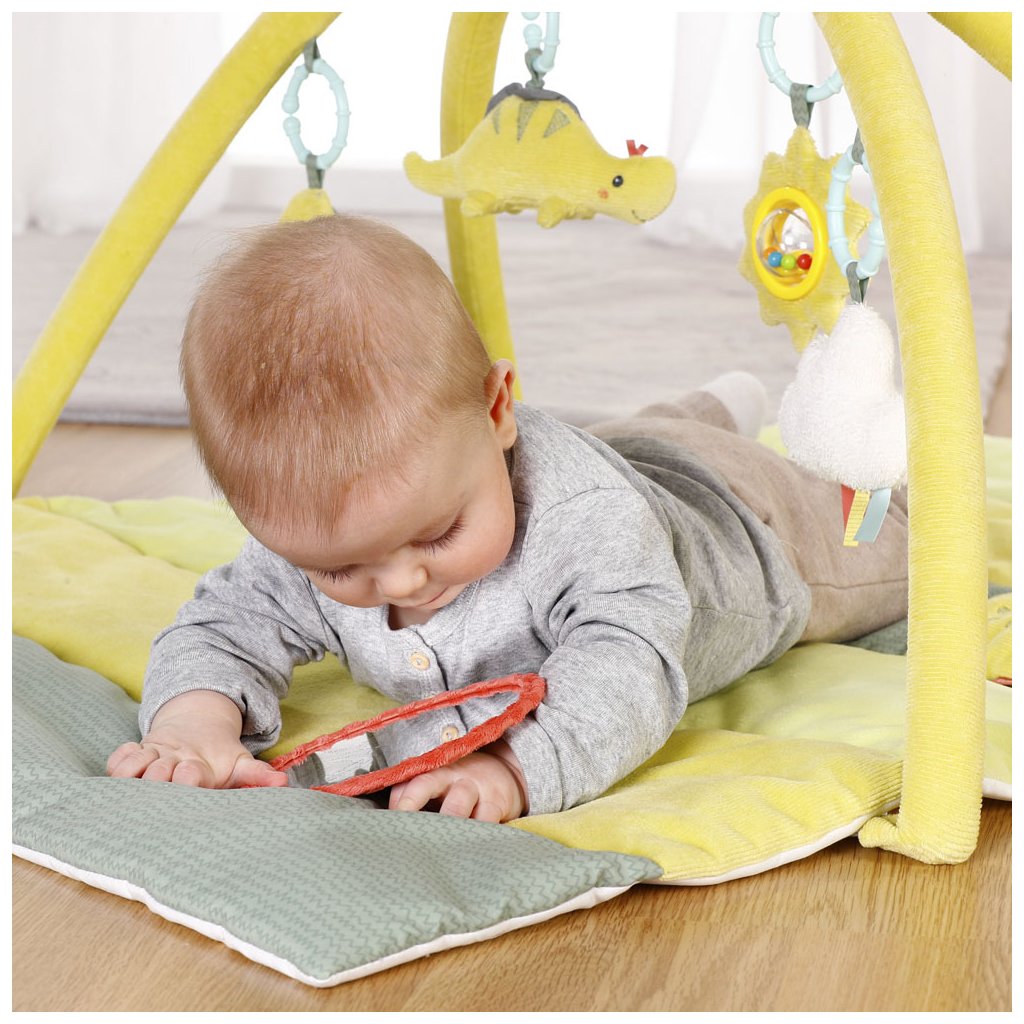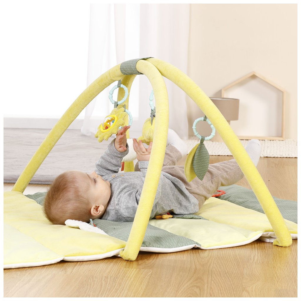 Mäkká aktivita deka podporuje prirodzenú zvedavosť detí už od raného veku. Nechajte deti objavovať svet okolo seba bezpečným spôsobom. Deka je vyrobená z kvalitného a mäkkého materiálu a izoluje chlad od podlahy. Súčasťou deky je hrkálka, pískatko, šuštiaci papier, zrkadlo, zvonček a vibračný modul . Všetky tieto elementy hravo stimulujú zmysly dieťaťa a rozvíjajú fantáziu, zmysly a jemnú motoriku. Závesný hrací oblúk je v dostatočnej výške, aby naň deti dosiahli, aj keď budú ležať na chrbte. Závesné plyšové hračky sú ľahko uchopiteľné aj pre malé detské ručičky.