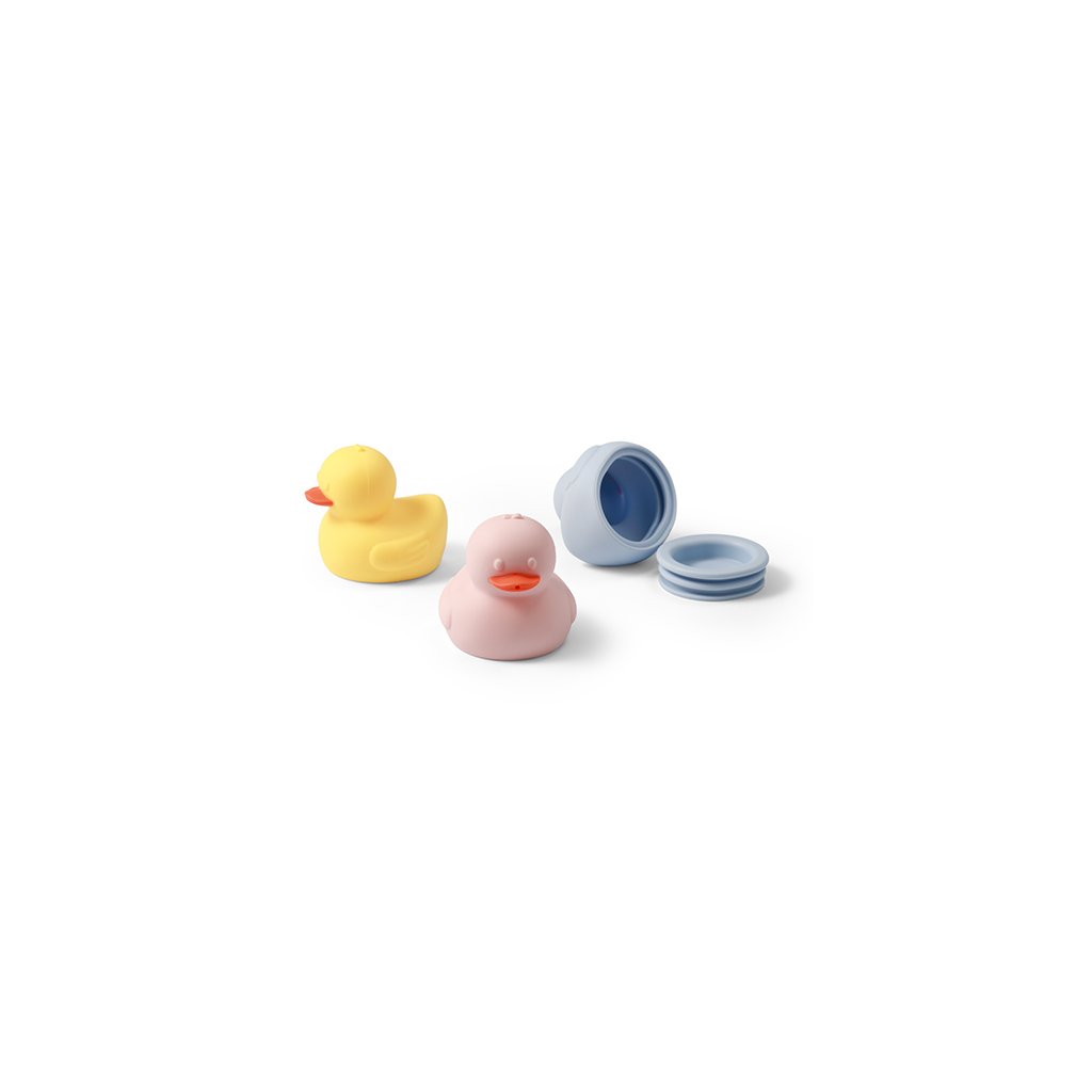 Súprava kačičiek do kúpeľa – zábavná, hygienická a bezpečná hra pre vaše bábätko. Sada obsahuje tri starostlivo vyrobené kačičky v jemných pastelových farbách. Sú mäkké, príjemné na dotyk a vyrobené z bezpečného silikónu bez BPA a ftalátov. Kačičky majú v zobáčiku otvor, cez ktorý po stlačení striekajú vodu – kúpanie sa tak mení na hravý a interaktívny zážitok. Vďaka odnímateľnému spodku sú hračky ľahko umývateľné a sušiteľné, takže nehrozí vznik plesní či nečistôt. Ergonomický tvar a ľahký materiál zároveň podporujú rozvoj úchopových schopností a jemnej motoriky dieťaťa.