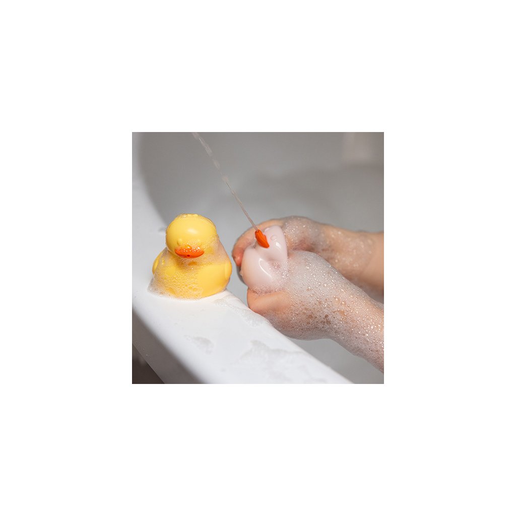 - Striekanie vody – po naplnení vodou a stlačení kačička strieka zo zobáčika, čo prináša veľa zábavy pri kúpaní