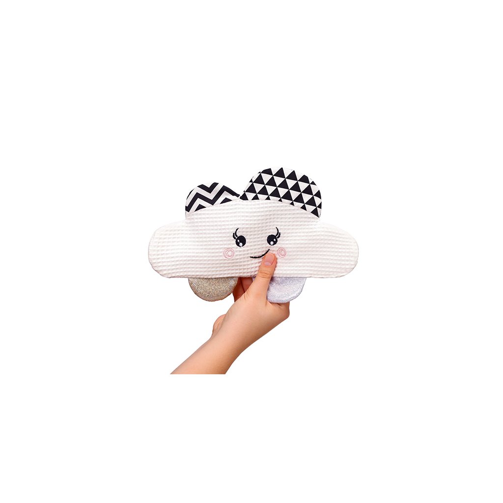 Tento plochý plyšák obsahuje prvky v kontrastných farbách. Počas prvých 3 mesiacov svojho života vidí novorodenec čierno-bielo. Takéto farby hračky priťahujú zrak dieťaťa. Pomáhajú sústrediť sa a upútať pozornosť.