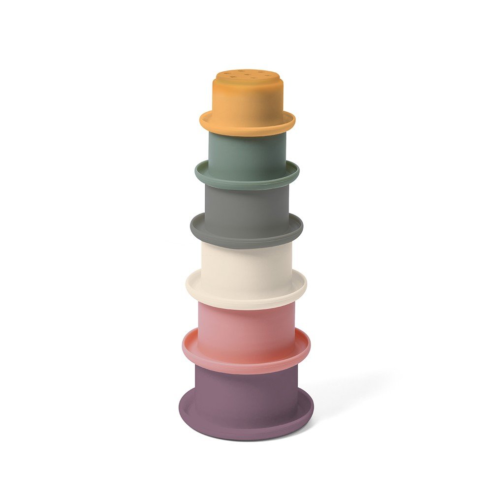 Stohovacie poháriky patria medzi neodmysliteľnú klasiku pri výbere hračiek pre deti, ktorá zabaví dieťatko na dlhý čas a zároveň rozvíja jemnú motoriku a koordináciu oko-ruka. Poháriky sú vyrobené z odolného silikónu v decentných moderných farbách. Možno ich formovať do pyramídy alebo vložiť všetky do jednej časti, pričom dieťatko spoznáva rozmanitý svet farieb a tvarov. Stohovaciu hračku je možné použiť nielen v interiéri, ale aj vo vani a exteriéri, či už v záhrade alebo výlete pri vode. Hračka rozvíja predstavivosť a manuálne zručnosti dieťaťa.