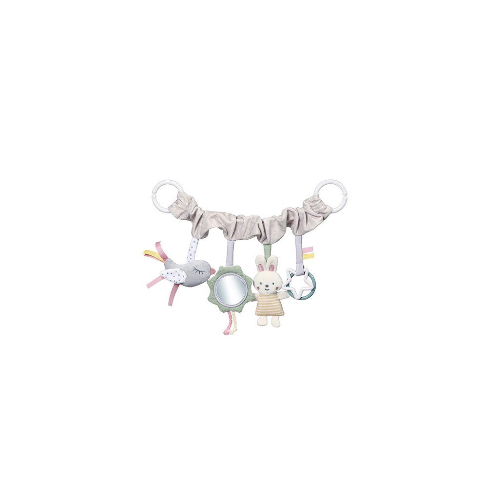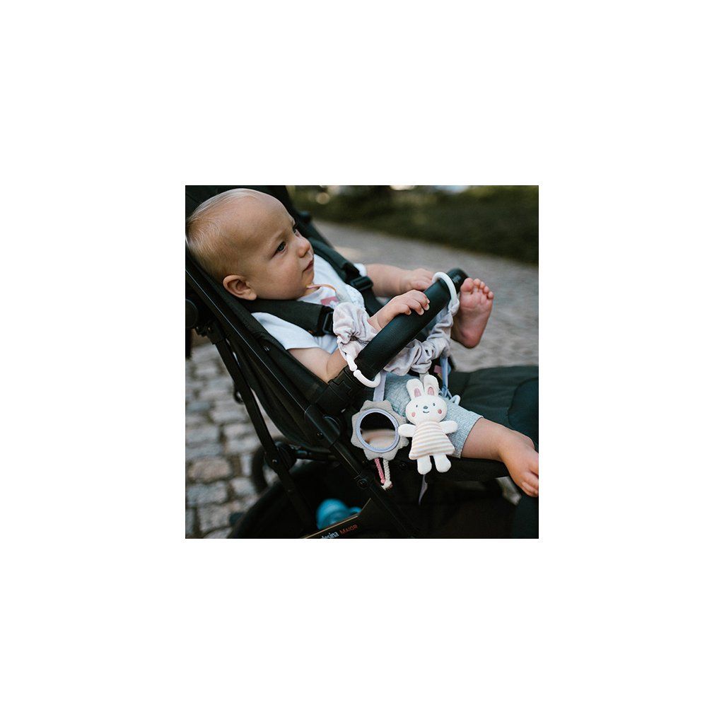 - Pomocou praktického a univerzálneho úchytu pripevníte hračku ku kočíku, autosedačke aj postieľke.