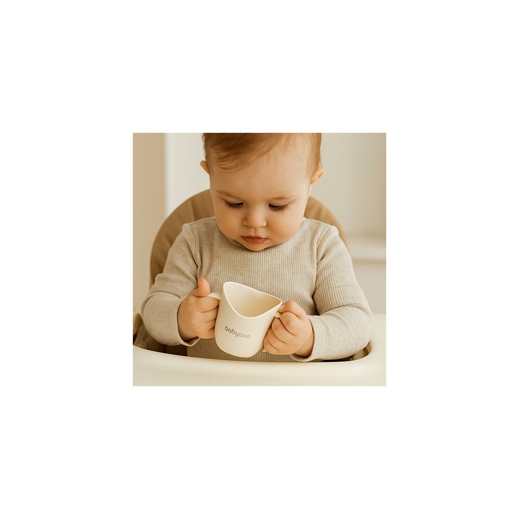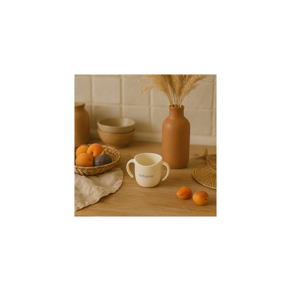 BABYONO Hrnček ergonomický s uškami 120 ml beige 6m+