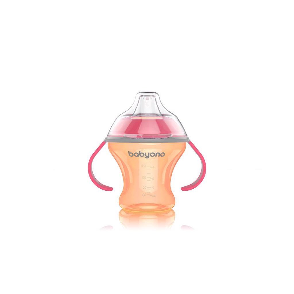 BABYONO Hrnček netečúci s mäkkým náustkom Natural Nursing 180 ml oranžová