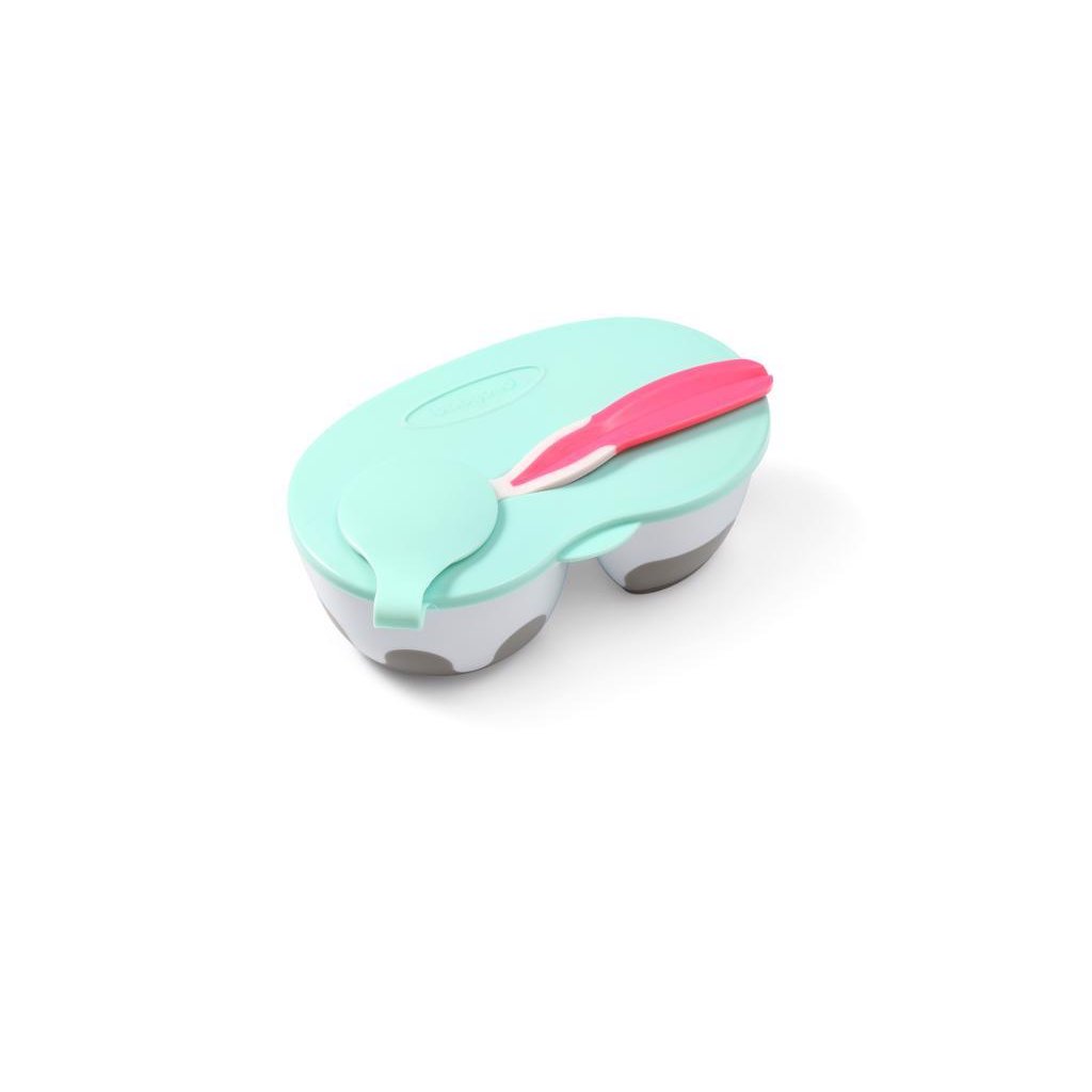 - dvojkomorová miska s lyžičkou Babyono je nenahraditeľnou súpravou počas každej prechádzky