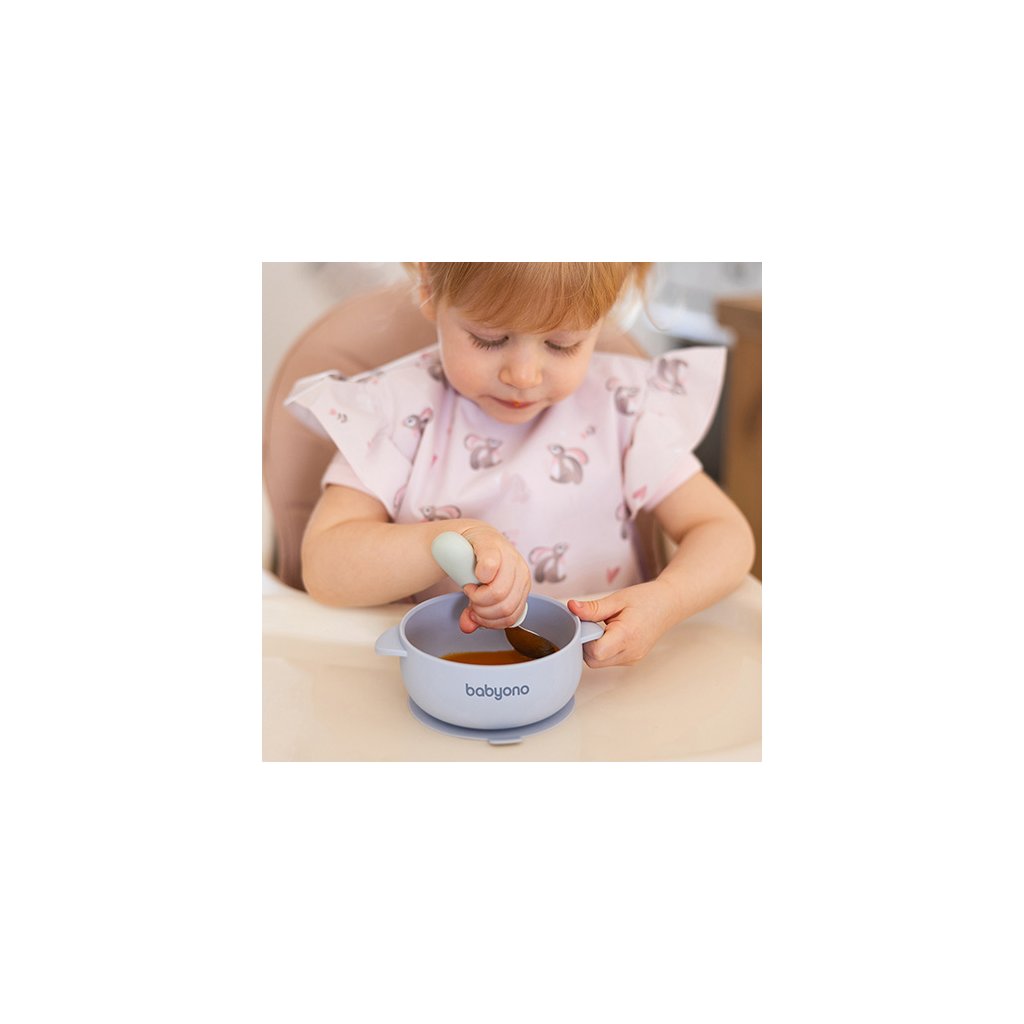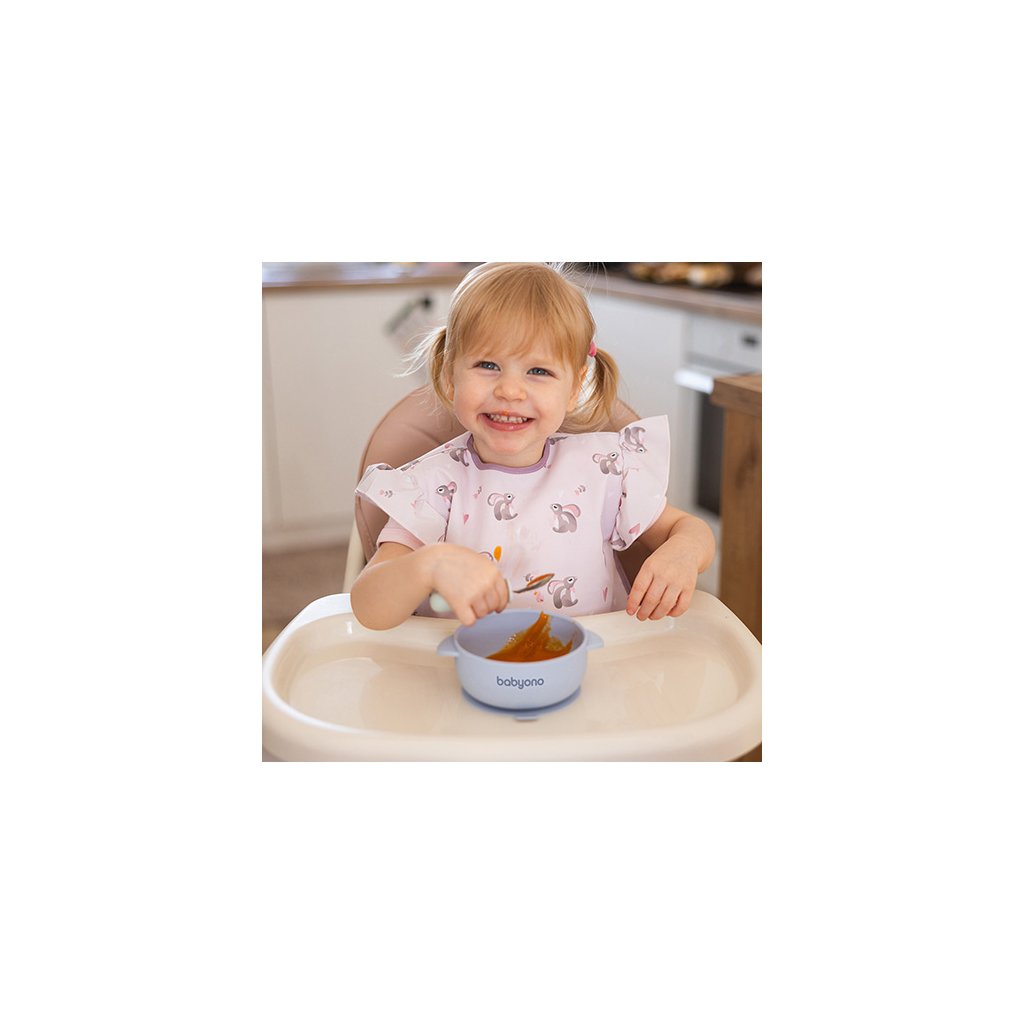 Začínate svojmu bábätku zavádzať nové chute? Silikónová miska s prísavkou a viečkom je ideálna pri prechode na tuhú stravu aj pri učení samostatného jedenia. Vhodná na podávanie polievok, cestovín, zeleniny, ovocia, jogurtov či kaší. Silná prísavka udrží misku pevne na stole, aj keď sa vaše zvedavé dieťa pokúsi ju prevrhnúť. Zaoblené okraje uľahčujú naberanie jedla a viečko udrží pokrm teplý a čerstvý. Protišmykové rukoväte zaručia bezpečné prenášanie misky, aj keď je plná. Miska je vyrobená z odolného, netoxického silikónu bez BPA, vhodná do mikrovlnnej rúry aj umývačky riadu.
