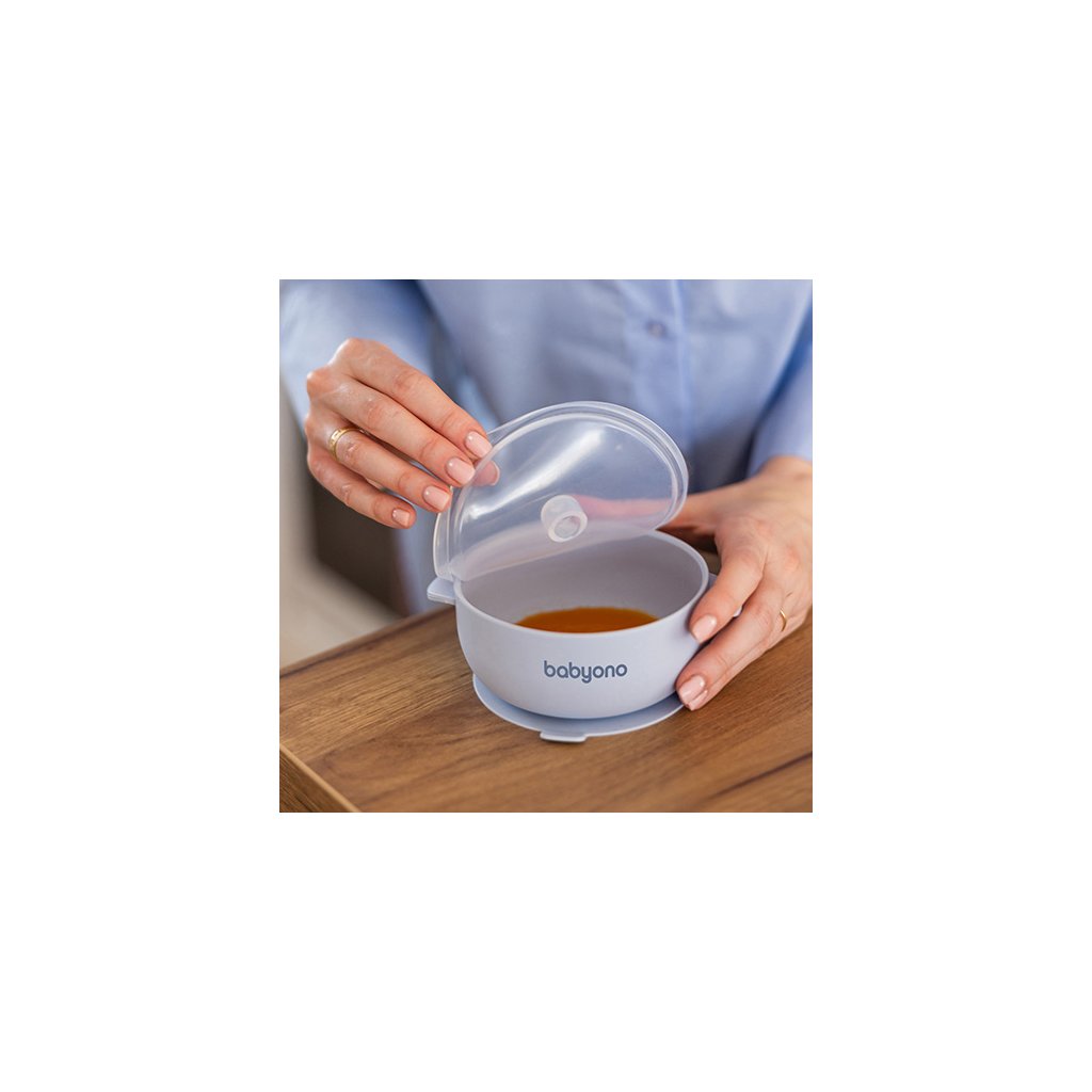BABYONO Miska silikónová s prísavkou a viečkom modrá 6m+