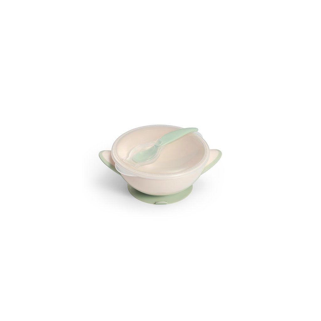 BABYONO Miska uzatvárateľná s prísavkou a lyžičkou 300 ml svetlo zelená 6m+