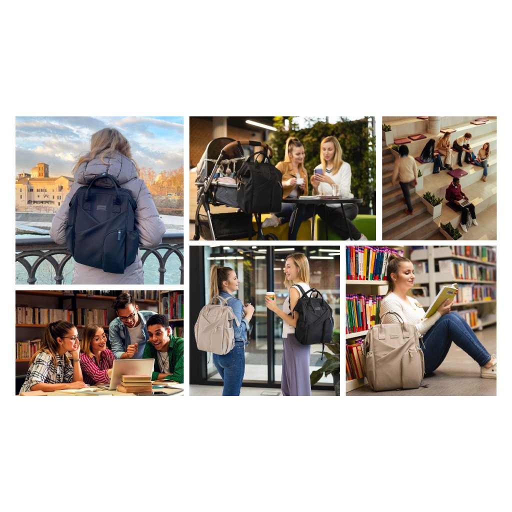 Moderný batoh pre rodičov v elegantnom štýle je dokonalým spoločníkom pre každodenné výzvy. Spája kompaktné rozmery s výnimočnou priestrannosťou a originálnym dizajnom. Ideálny pre milovníčky minimalizmu a prehľadnej organizácie. Vďaka priestrannosti sa doň zmestí všetko potrebné – plienky, fľaše, knihy, tablet aj drobnosti. Vo vnútri sa nachádza až 12 praktických vreciek, ktoré vám pomôžu udržať poriadok vo všetkom, čo potrebujete pre seba alebo bábätko.