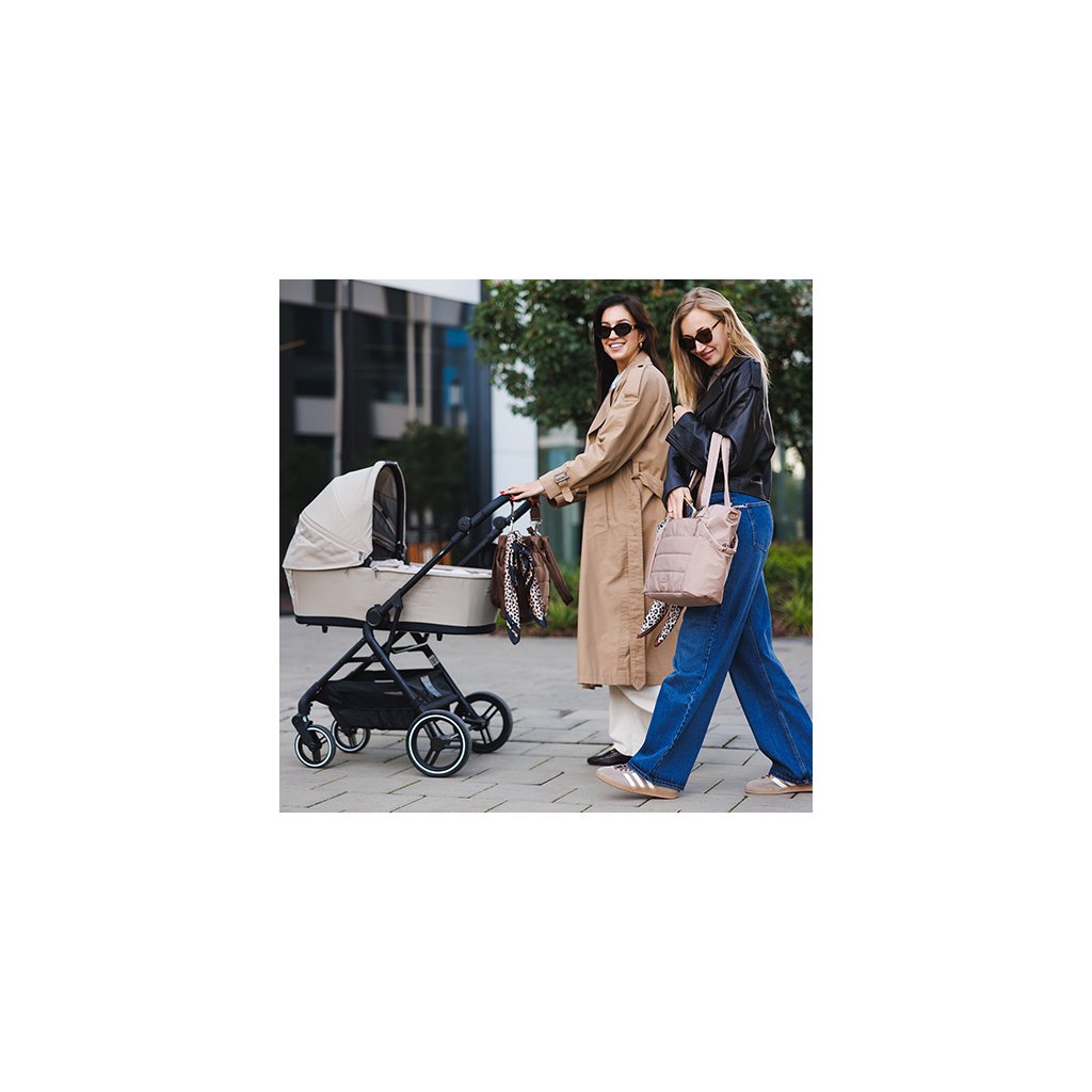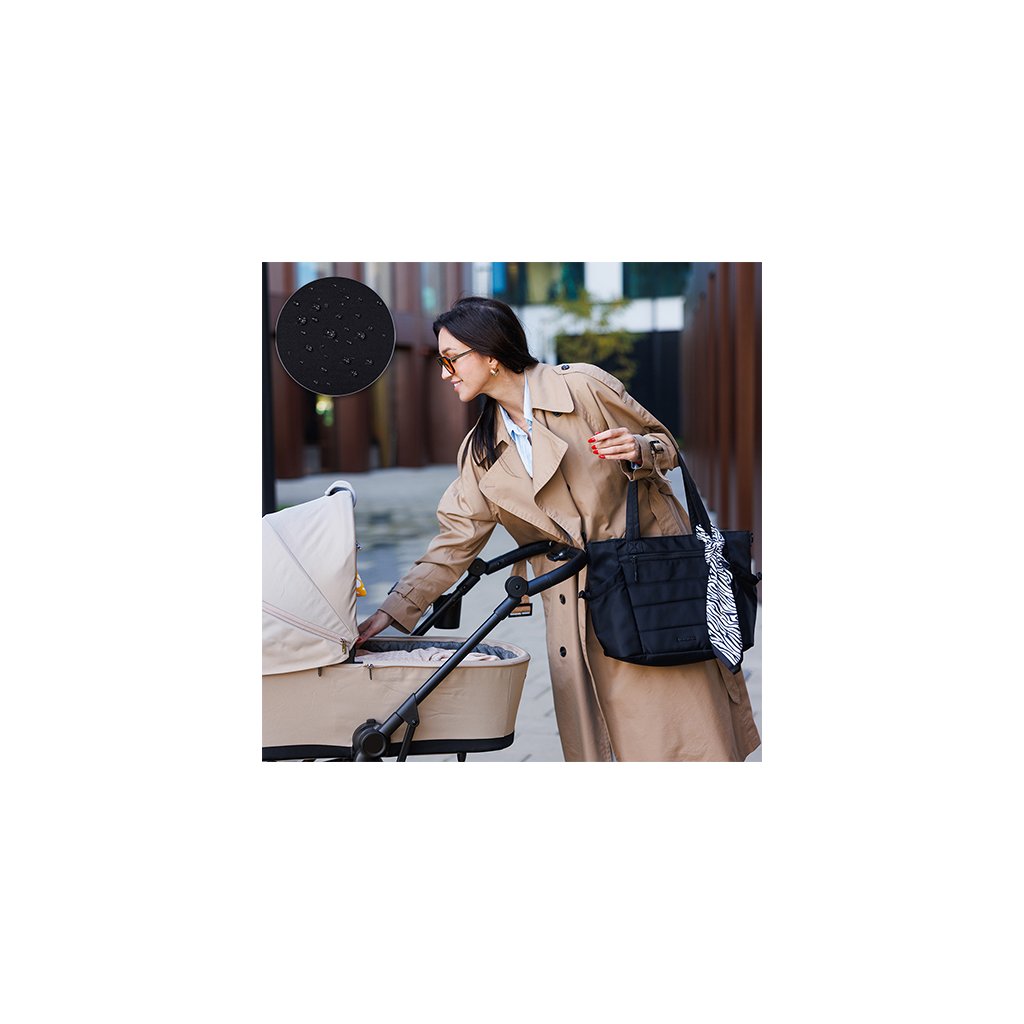 Je veľká a priestranná, ideálna na nosenie bábätka aj dieťaťa. Má 10 vreciek, pútko na kľúče a prebaľovaciu podložku, čo vám umožní múdro usporiadať interiér. Je vyrobená z nepremokavého materiálu, venovali sme pozornosť detailom. Môžete ju zavesiť na kočík, nosiť v ruke alebo ju nosiť cez rameno.