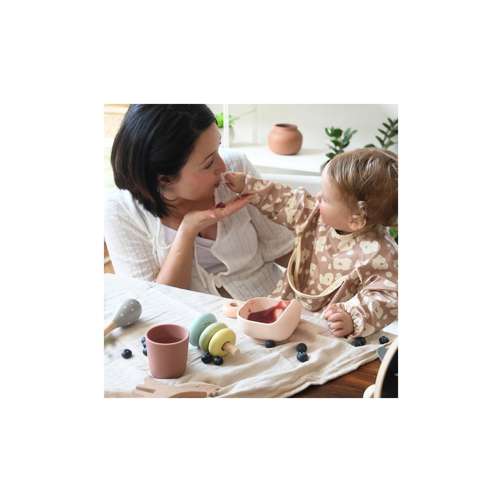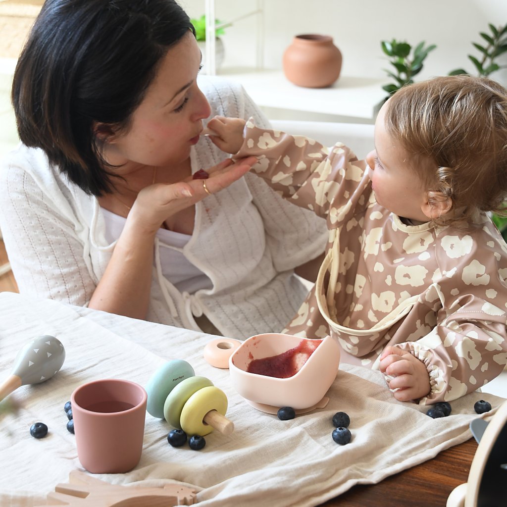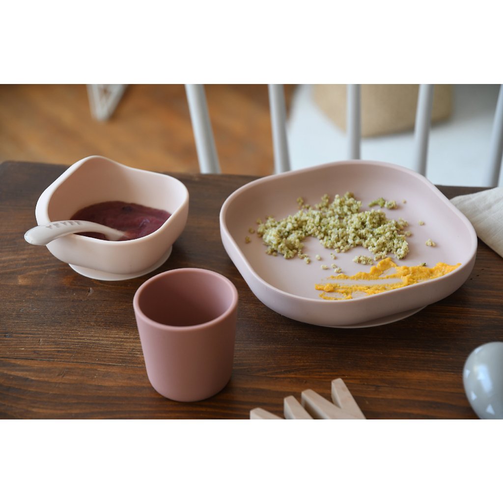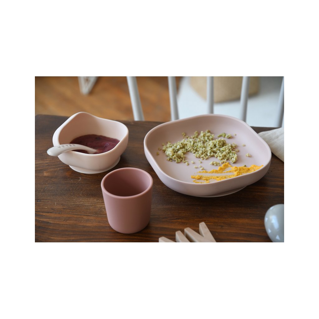 Sada taniera, misky, téglika na pitie a lyžičky z vysoko kvalitného silikónu je ideálna pre prvé samostatné kŕmenie. Prísavka pri miske a tanieri umožňuje uchytenie k stolu alebo pultu jedálenskej stoličky. Ergonomický tvar uľahčuje naberanie príkrmu.