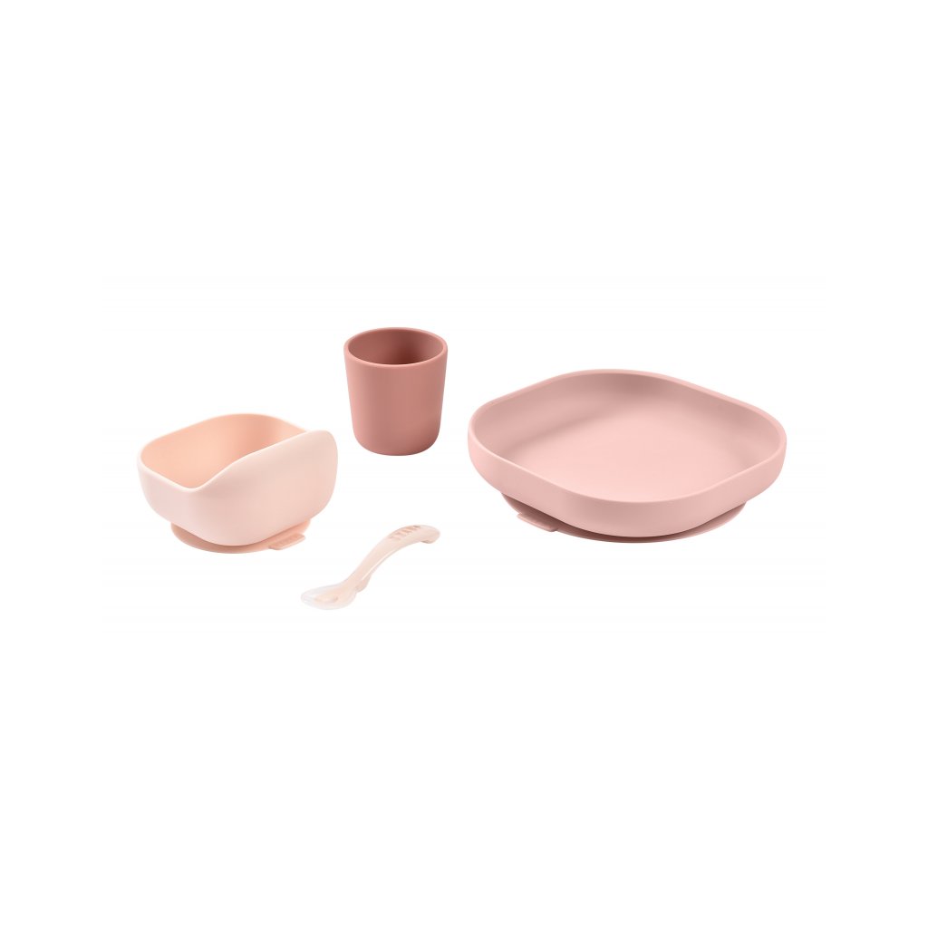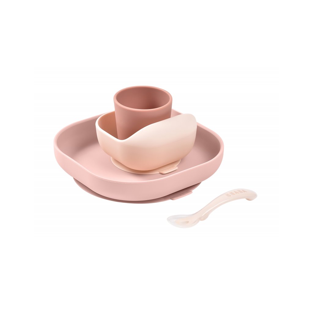 Beaba Jedálenská sada silikónová 4-dielna Cotton Candy