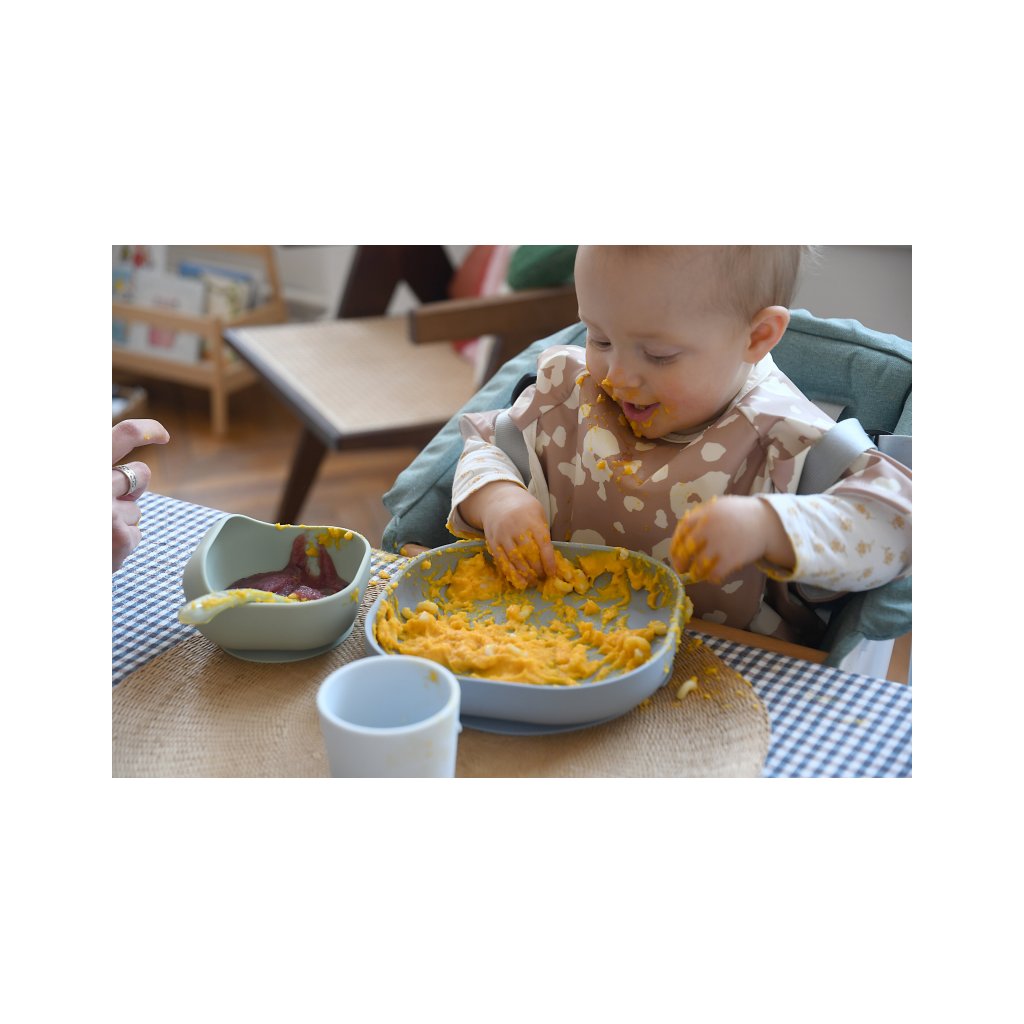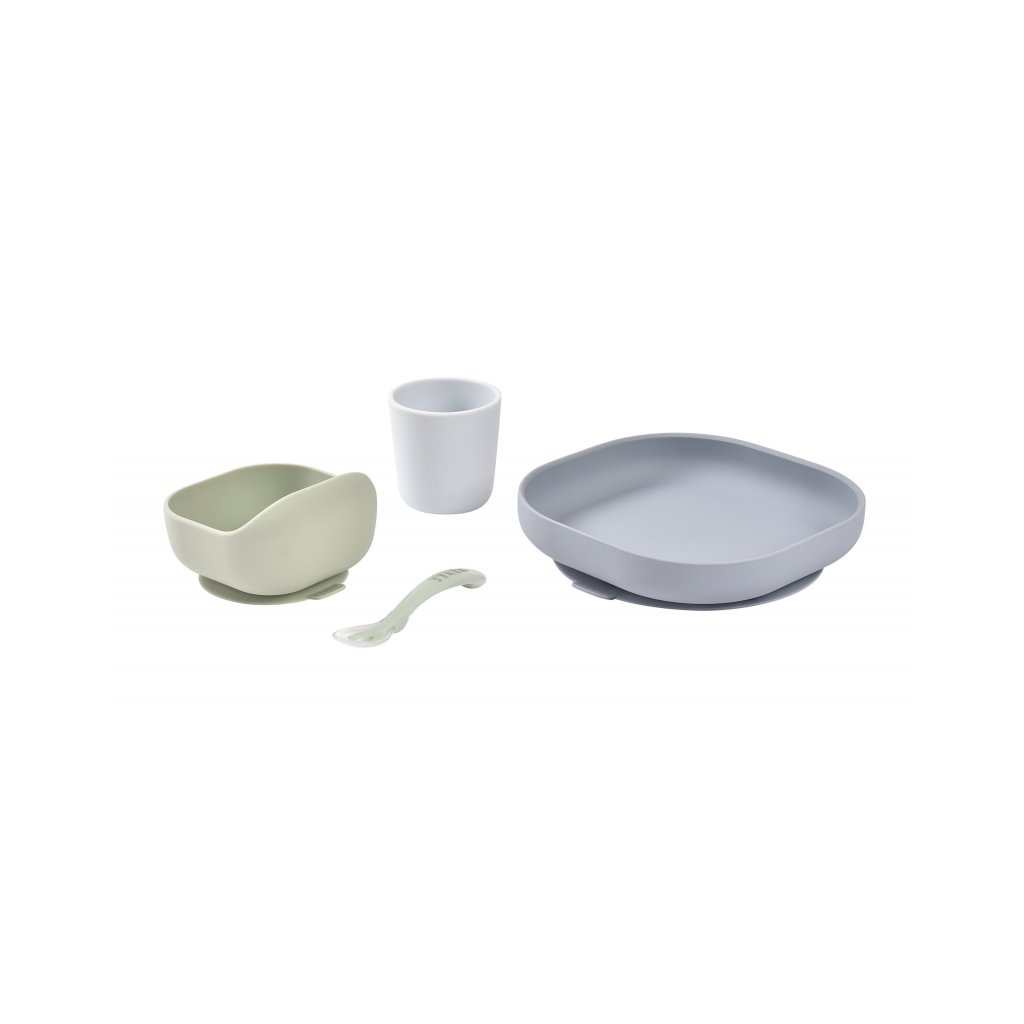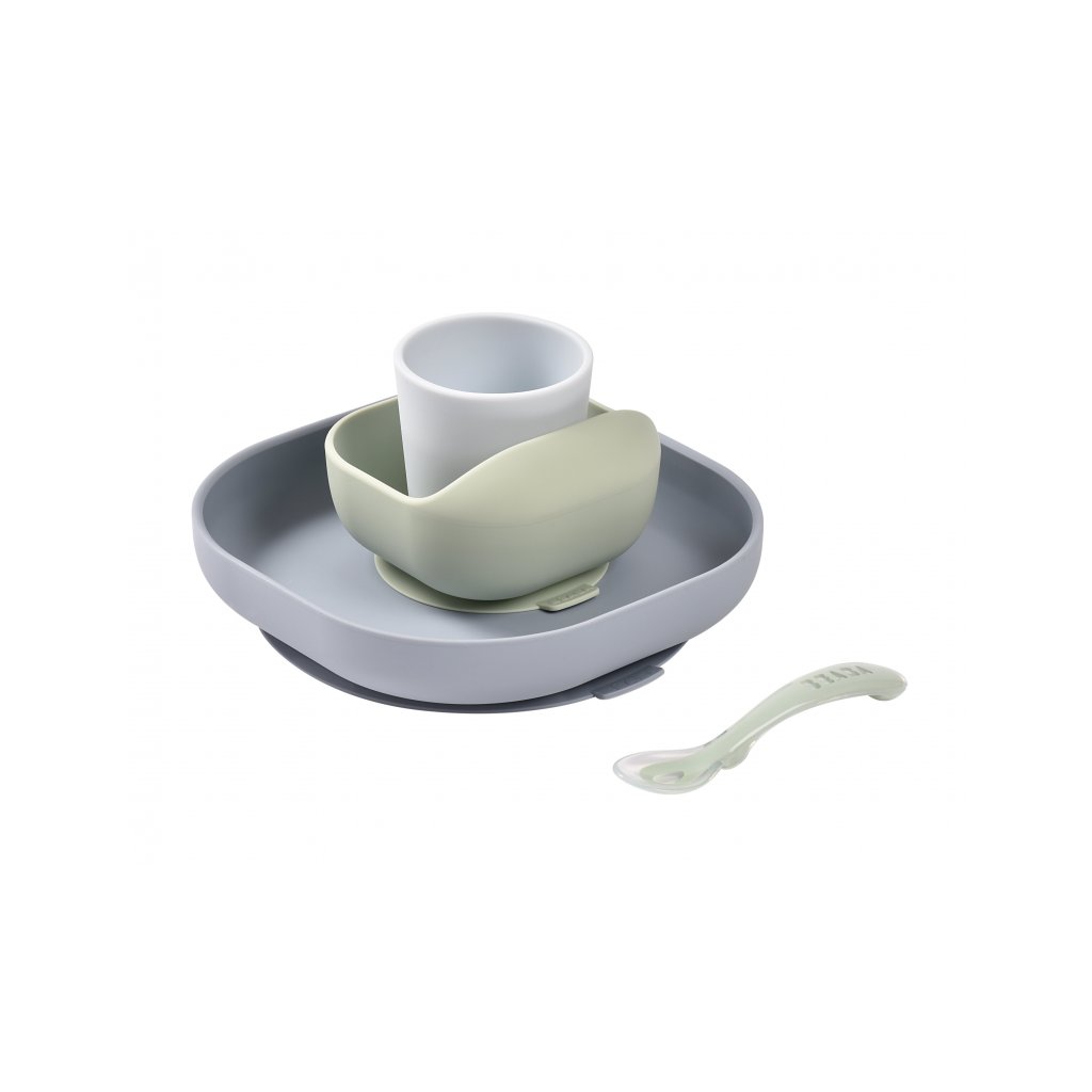 Sada taniera, misky, téglika na pitie a lyžičky z vysoko kvalitného silikónu je ideálna pre prvé samostatné kŕmenie. Prísavka pri miske a tanieri umožňuje uchytenie k stolu alebo pultu jedálenskej stoličky. Ergonomický tvar uľahčuje naberanie príkrmu.