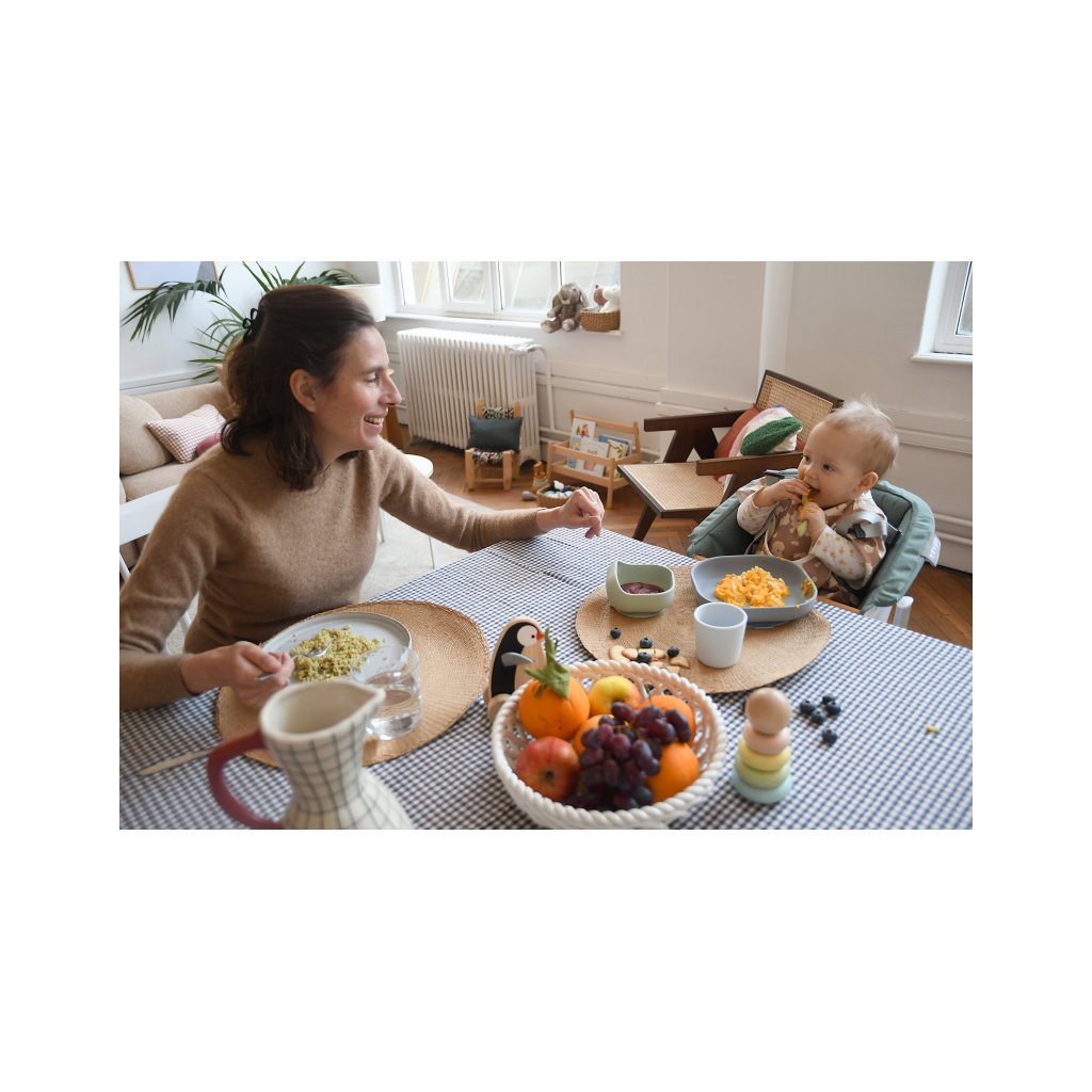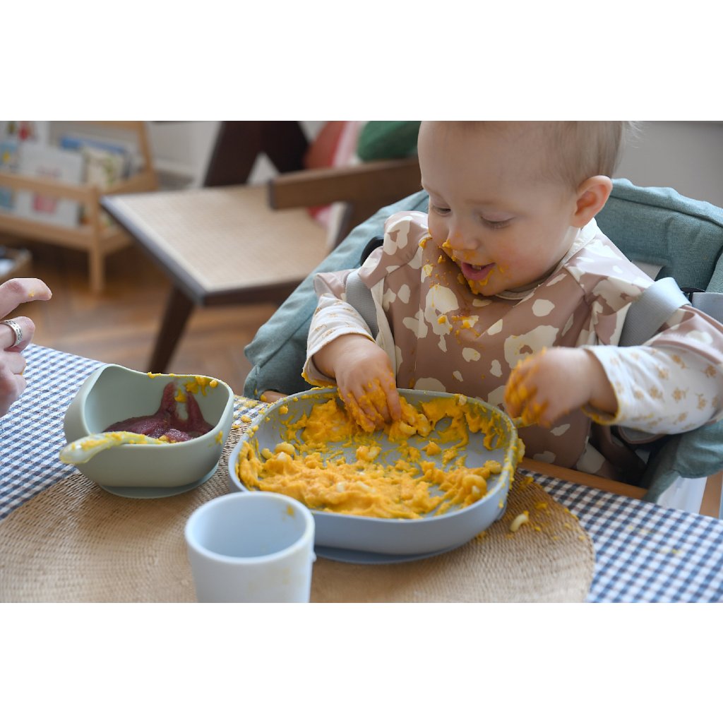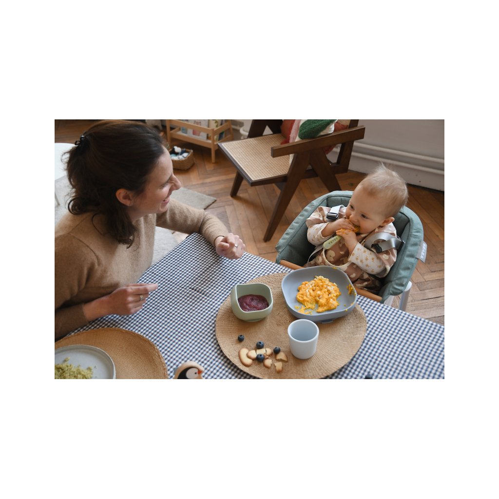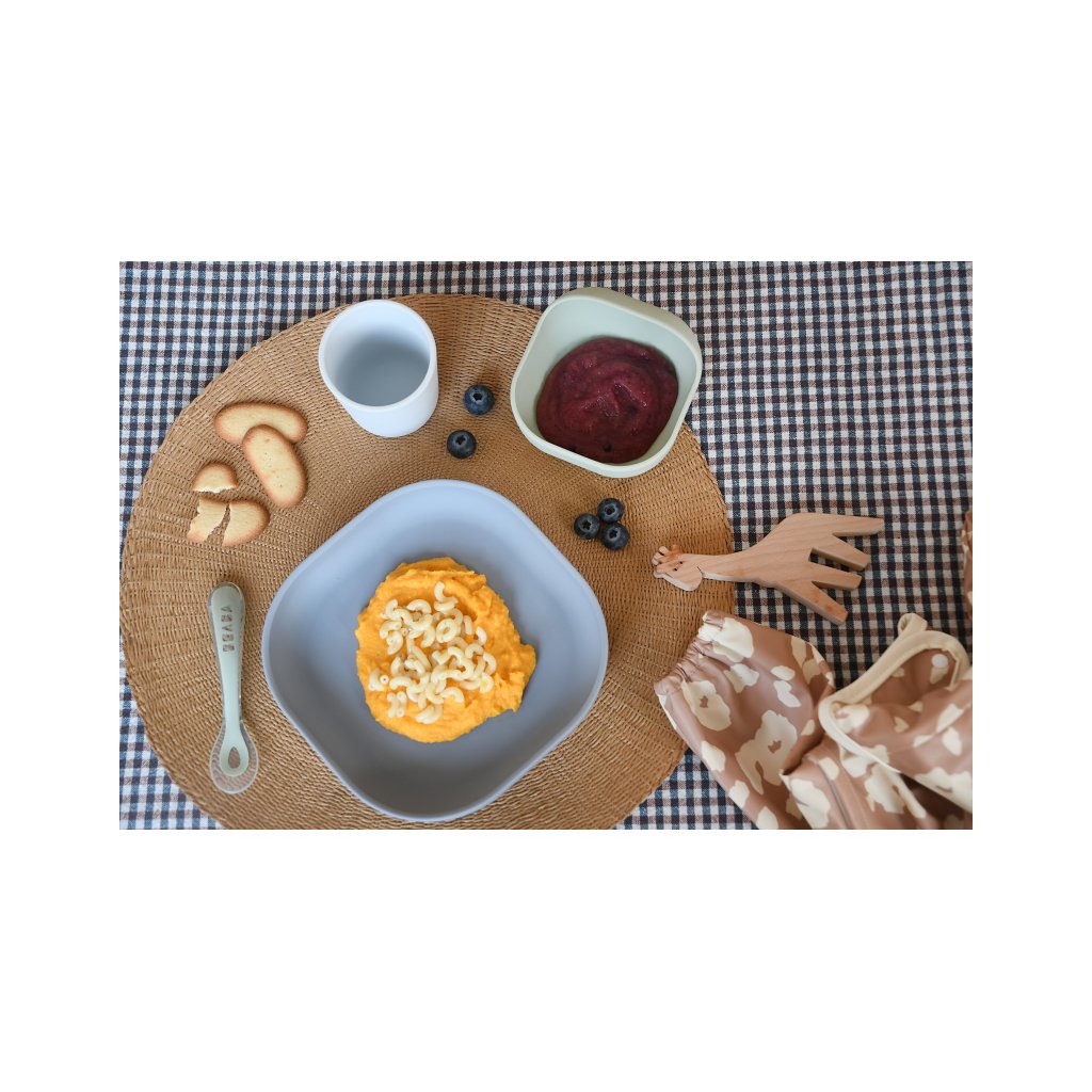Sada taniera, misky, téglika na pitie a lyžičky z vysoko kvalitného silikónu je ideálna pre prvé samostatné kŕmenie. Prísavka pri miske a tanieri umožňuje uchytenie k stolu alebo pultu jedálenskej stoličky. Ergonomický tvar uľahčuje naberanie príkrmu.