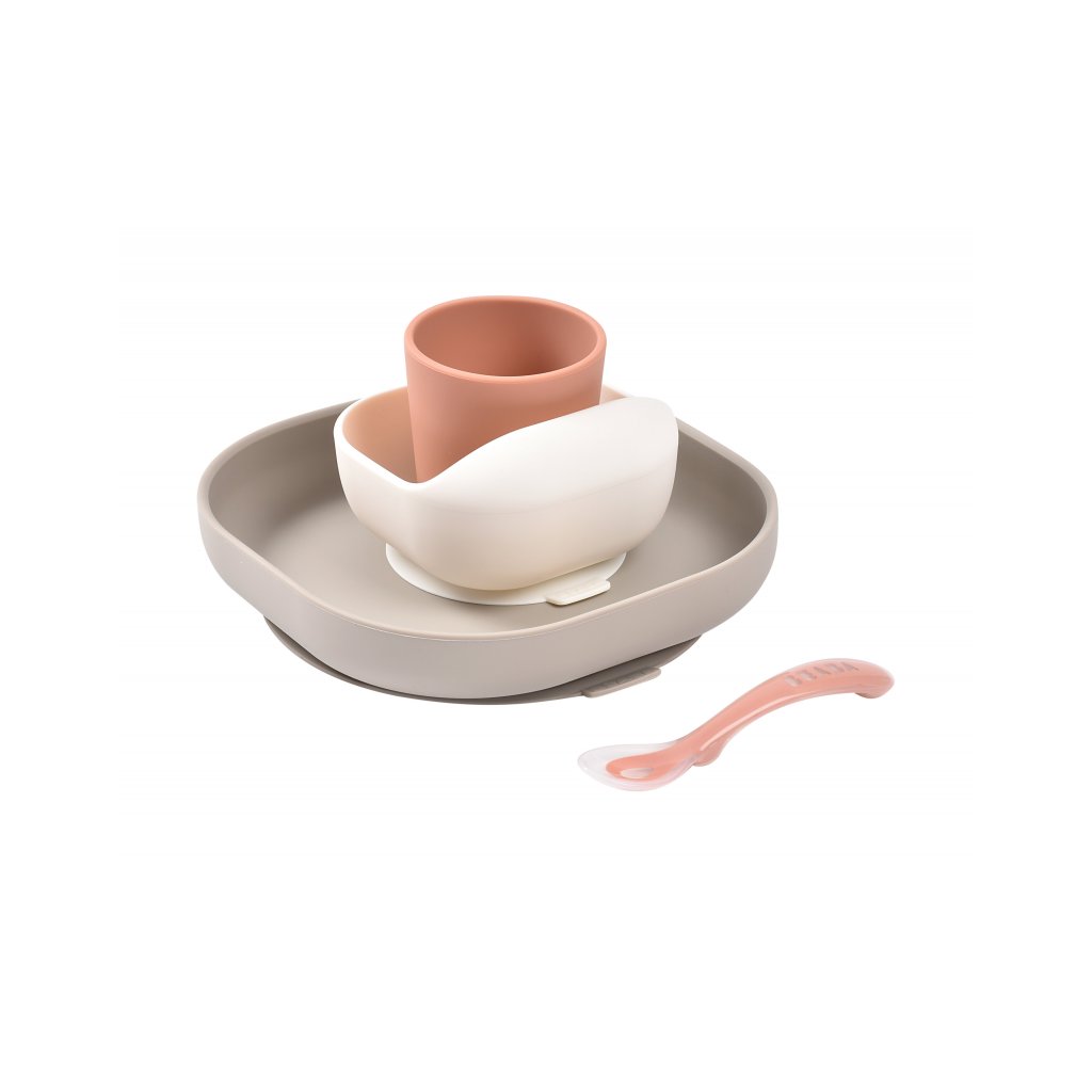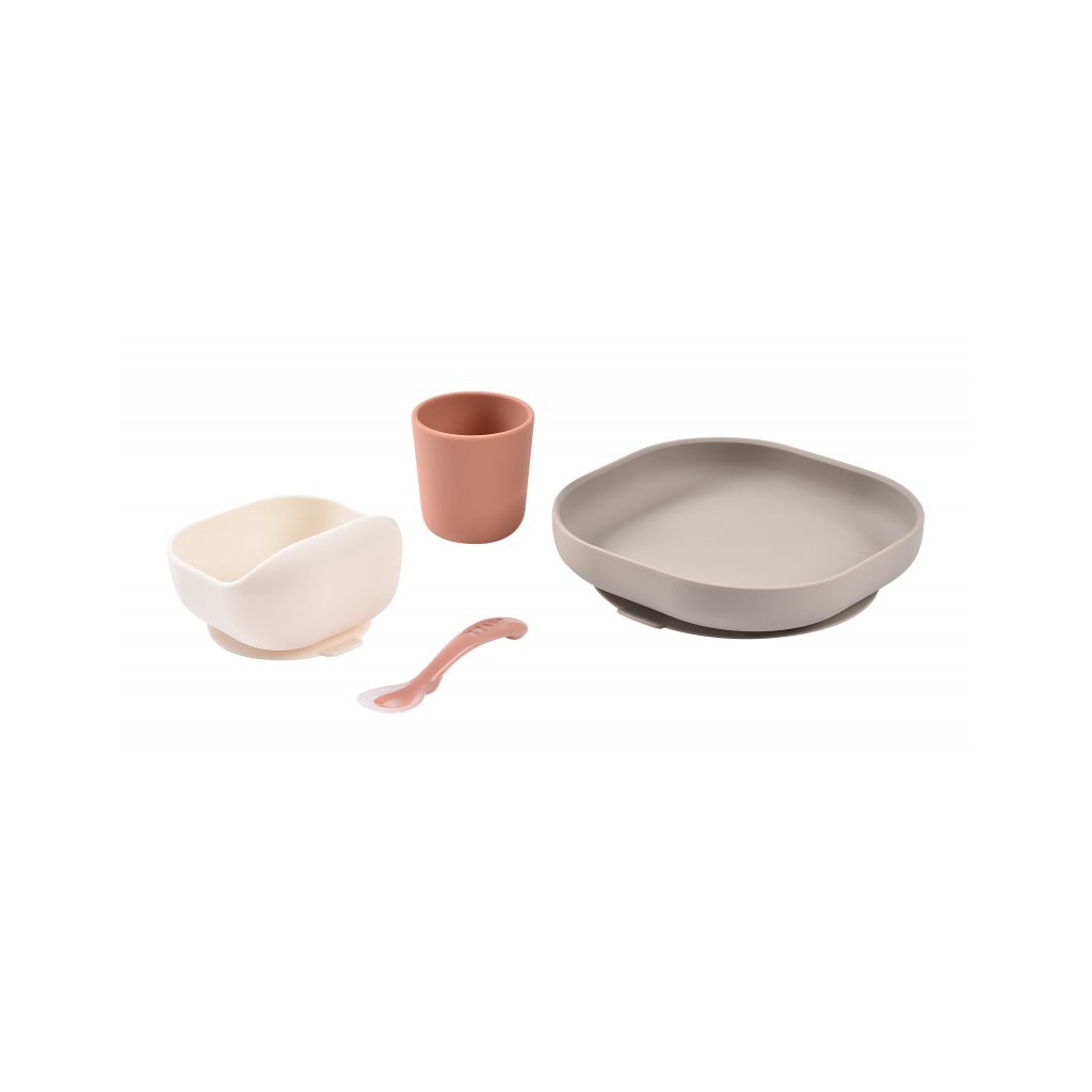 Beaba Jedálenská sada silikónová 4-dielna Terracotta / Gazelle