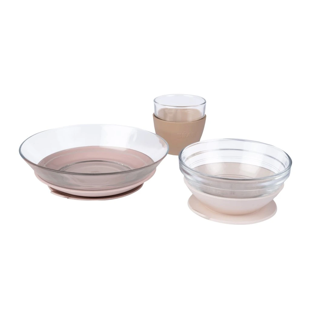 Beaba Jedálenská sada sklenená s prísavkami Cotton Candy