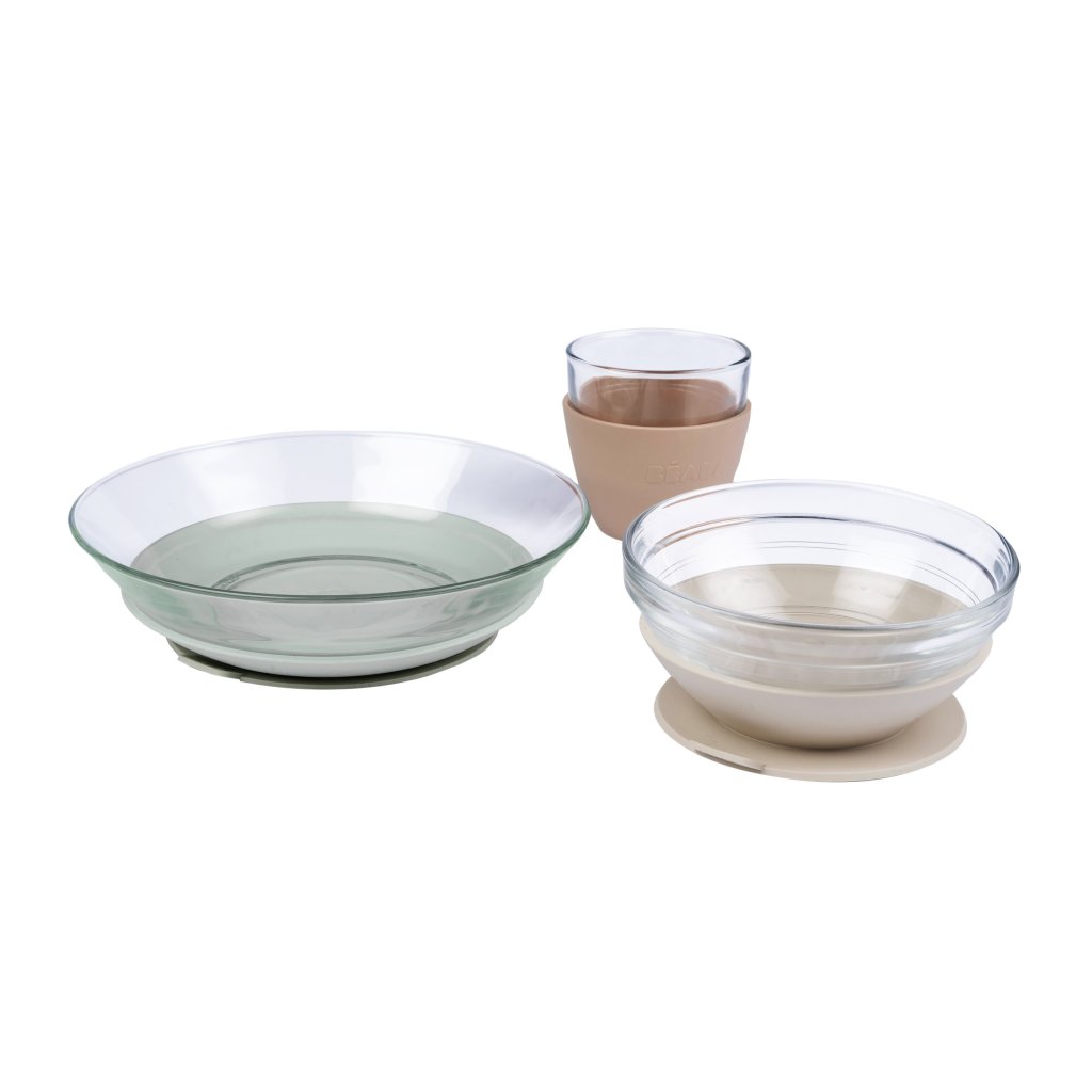 Beaba Jedálenská sada sklenená s prísavkami Natural