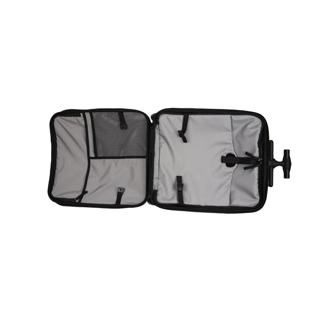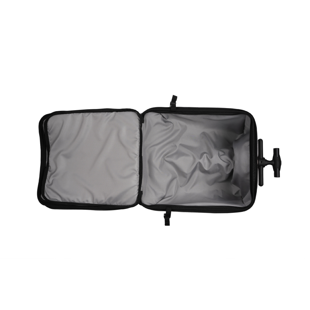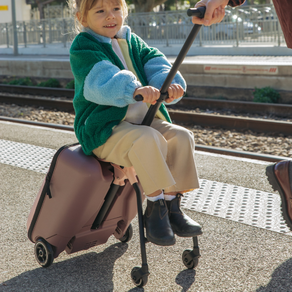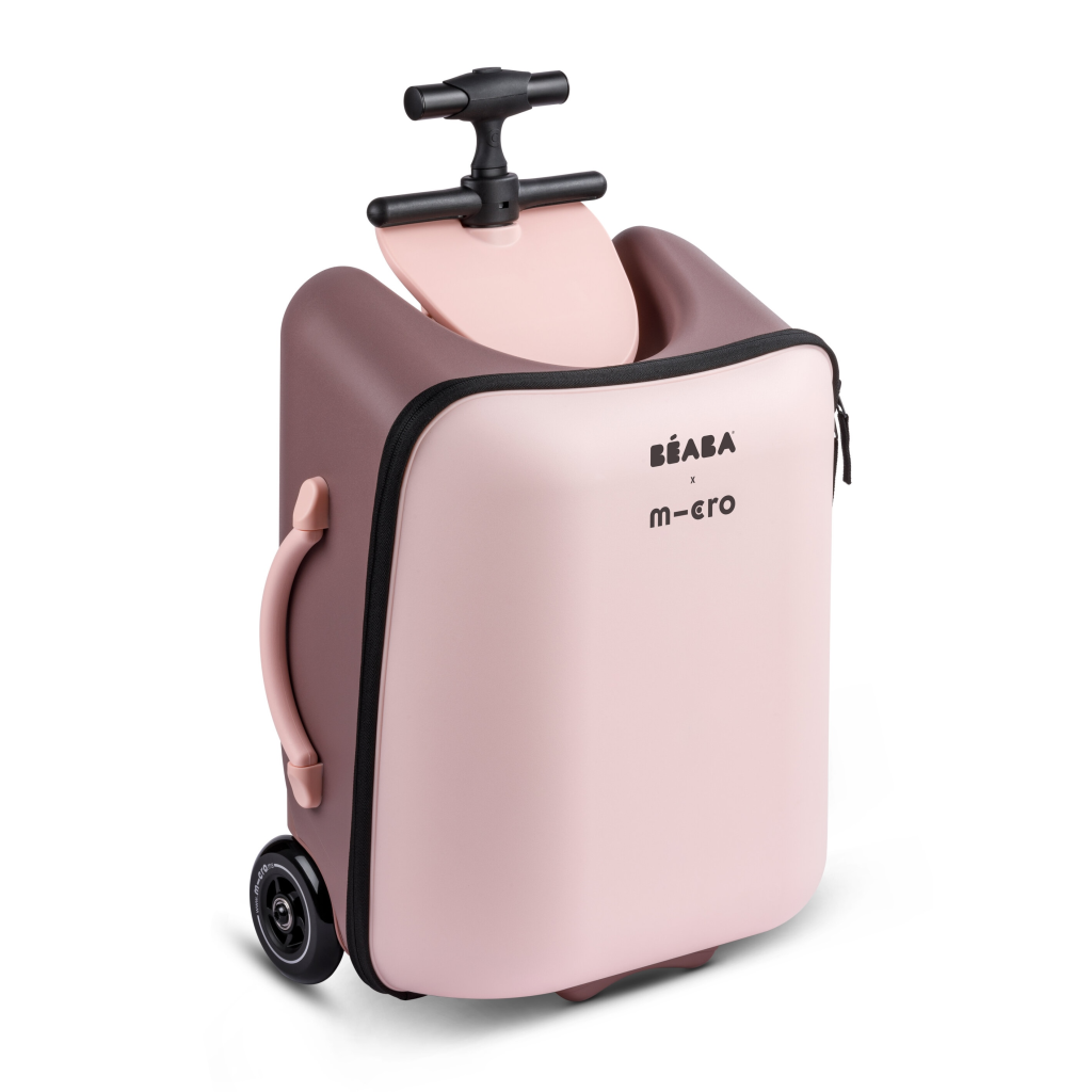 Unikátna kabínová batožina uľahčí a zrýchli vaše cestovanie s malým dieťaťom na letisku, na stanici a pod. Kufor je vybavený sedadlom, na ktorom môžete voziť sediace dieťa. Maximálnu stabilitu pri jazde so sediacim dieťaťom poskytujú vyklápacie oporné nohy s kolieskami. Vyťahovacie držadlo a predné kolieska otočné o 360 ° ponúkajú pohodlné ovládanie kufra.