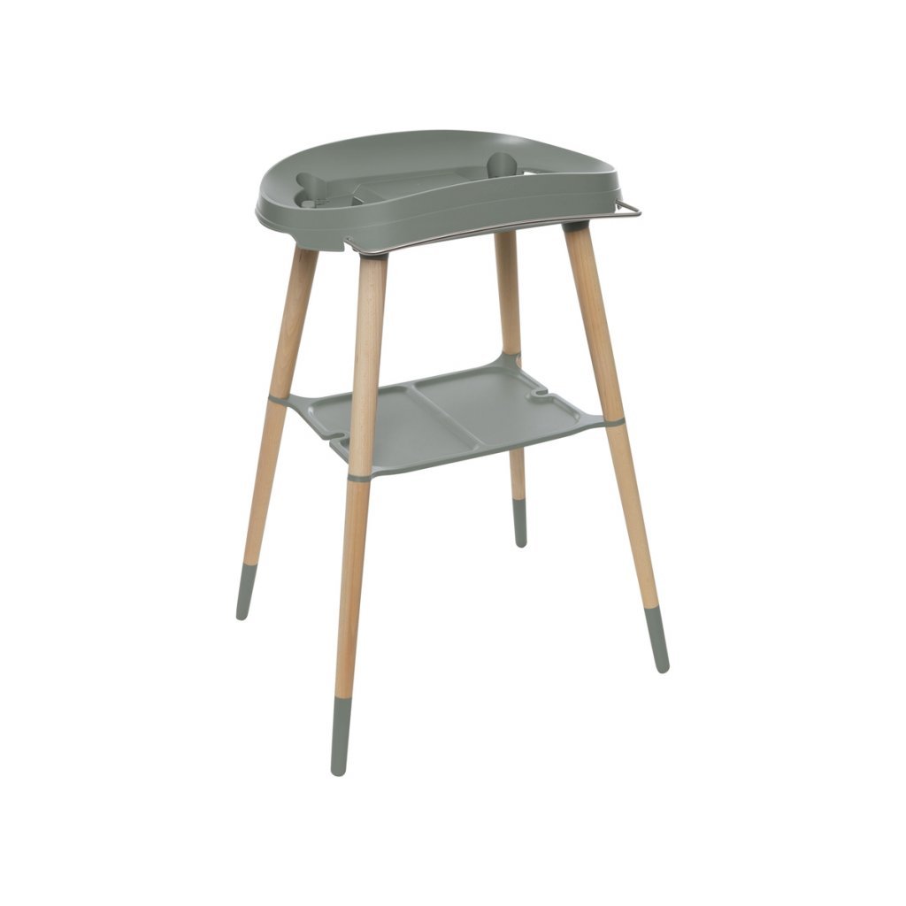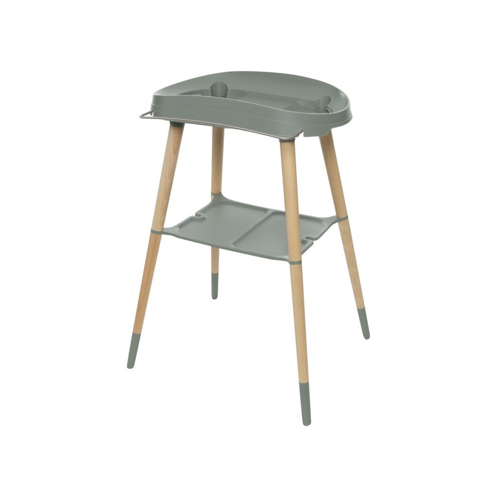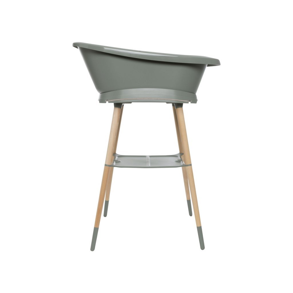 Veľmi stabilný vaňový stojan Sense má nohy vyrobené z lakovaného bukového dreva s certifikáciou FSC. To dodáva stojanu teplý moderný vzhľad. Je vybavený praktickými pomôckami; vpredu je pripevnený držiak na uteráky. Priestranná plastová polička poskytuje dostatok miesta napríklad na šampón, žinku, vodné hračky alebo kúpací gél. To znamená, že máte po ruke všetky potrebné veci, aby ste si s dieťaťom mohli kúpanie užiť. Inovatívny systém upevnenia zaisťuje, že vaňu možno ľahko pripevniť k stojanu a rovnako ľahko sňať. Po kliknutí môžete svoje bábätko nerušene a bezpečne kúpať.