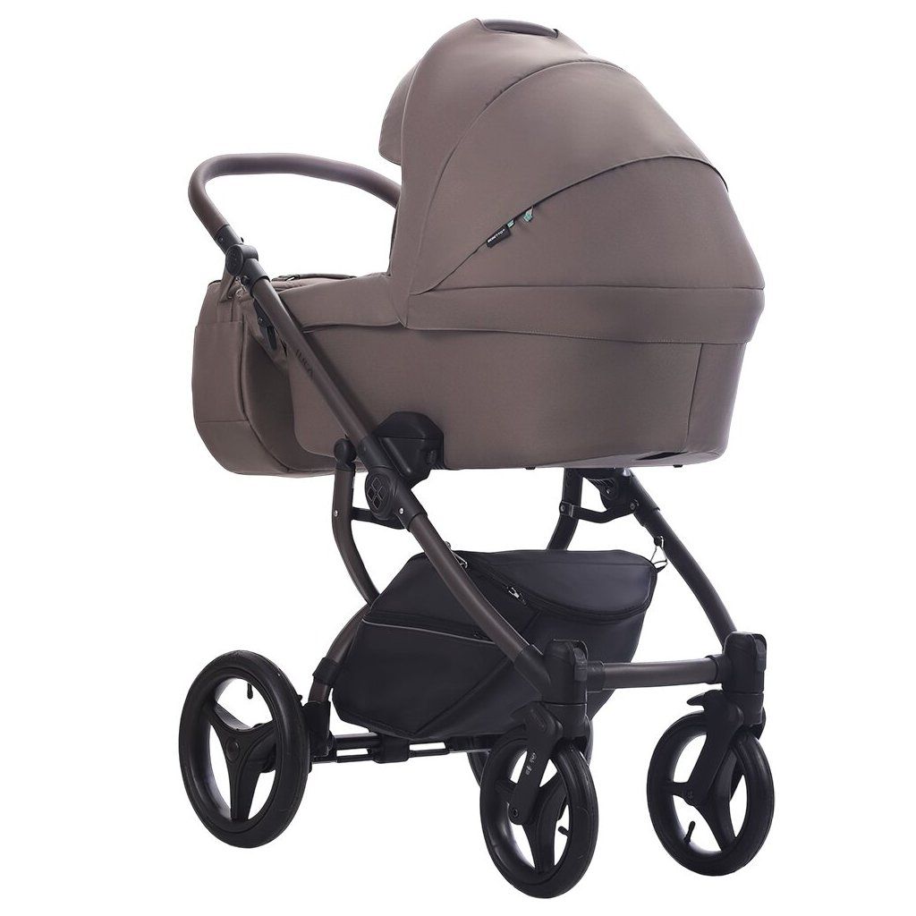 Luca New je predovšetkým elegancia. Jednofarebné čalúnenie a elegantná hnedá kožená rukoväť z neho robí ideálne riešenie pre ľudí, ktorí chcú elegantný vzhľad. Taška s kosouhlým tvarom vyzerá nielen skvele, ale je tiež veľmi priestranná a umožní vám nosiť potrebné doplnky pri prechádzkach s dieťaťom.