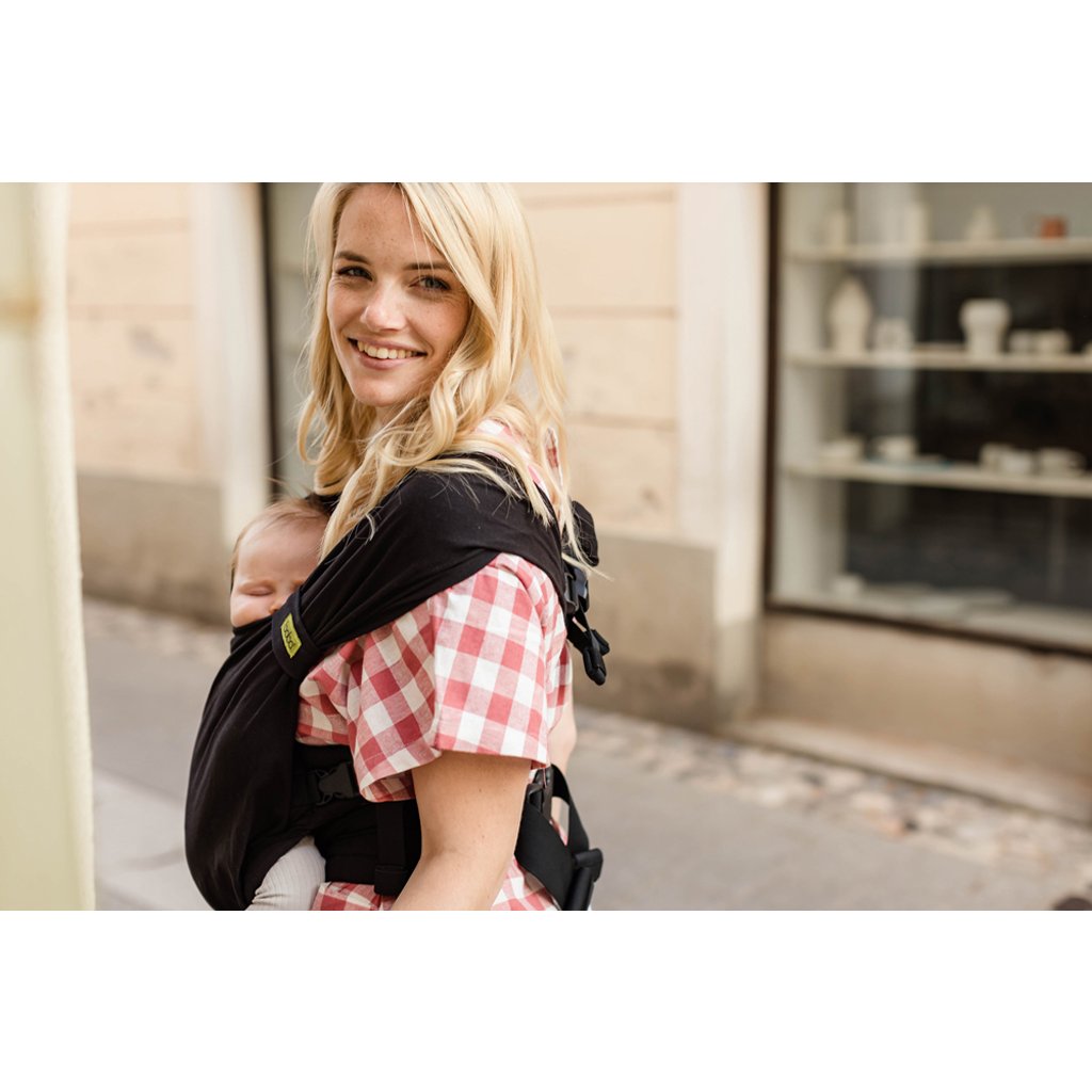 Patentovaná technológia spája to najlepšie z oboch svetov - jednoduchosť používania a pohodlie našich detských nosičov Boba a jemné držanie nosičov Boba Wrap v jednom. Nie je potrebné žiadne viazanie.