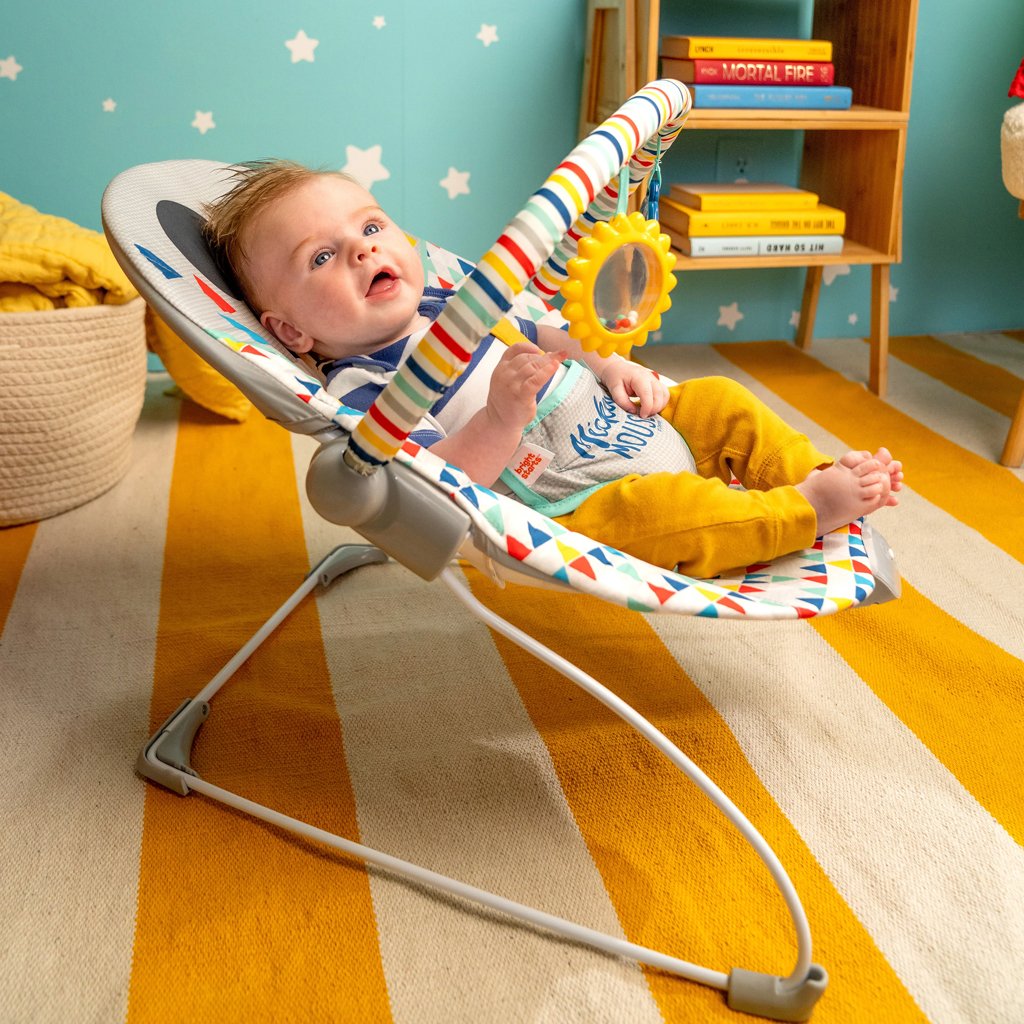 Keď príde čas na hranie, dve zavesené hračky premenia lehátko na prenosné herné centrum. Mamička či otecko môžu magicky odňať hrazdičku s hračkami jednou rukou, čo výrazne uľahčuje zdvíhanie či ukladanie malého myšiaka.