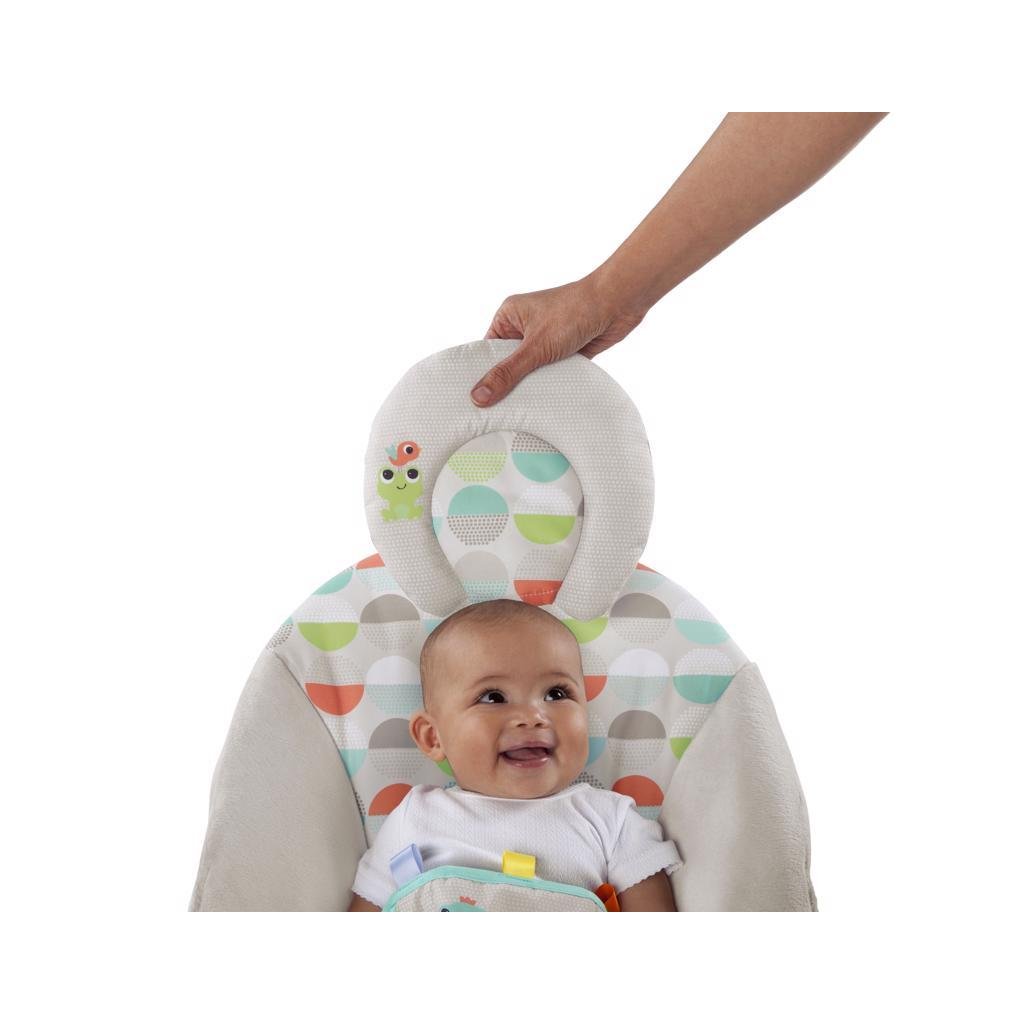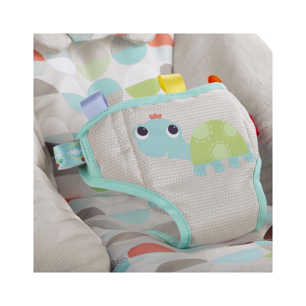 Lehátko Happy Safari bude dieťatko rozmaznávať a tešiť s usmievajúcimi sa zvieratkami, z ktorých sa stanú jeho najlepší priatelia. Pozorujte ako sa dieťatko cíti v lehátku pohodlne a bezpečne, čím bude nápomocné aj pre rodiča. Jednoducho odopnete hrazdičku jednou rukou, zatiaľ čo v druhej držíte dieťatko. Upokojujúce vibrácie a príjemné melódie napomáhajú dieťatku oddýchnuť si a užiť si čas strávený v lehátku naplno. Plyšové tkaniny a obľúbené saténové stužky Taggies podporujú hmatový rozvoj dieťatka. Lehátko má bezpečnostný 3-bodový pás a protišmykové nožičky.