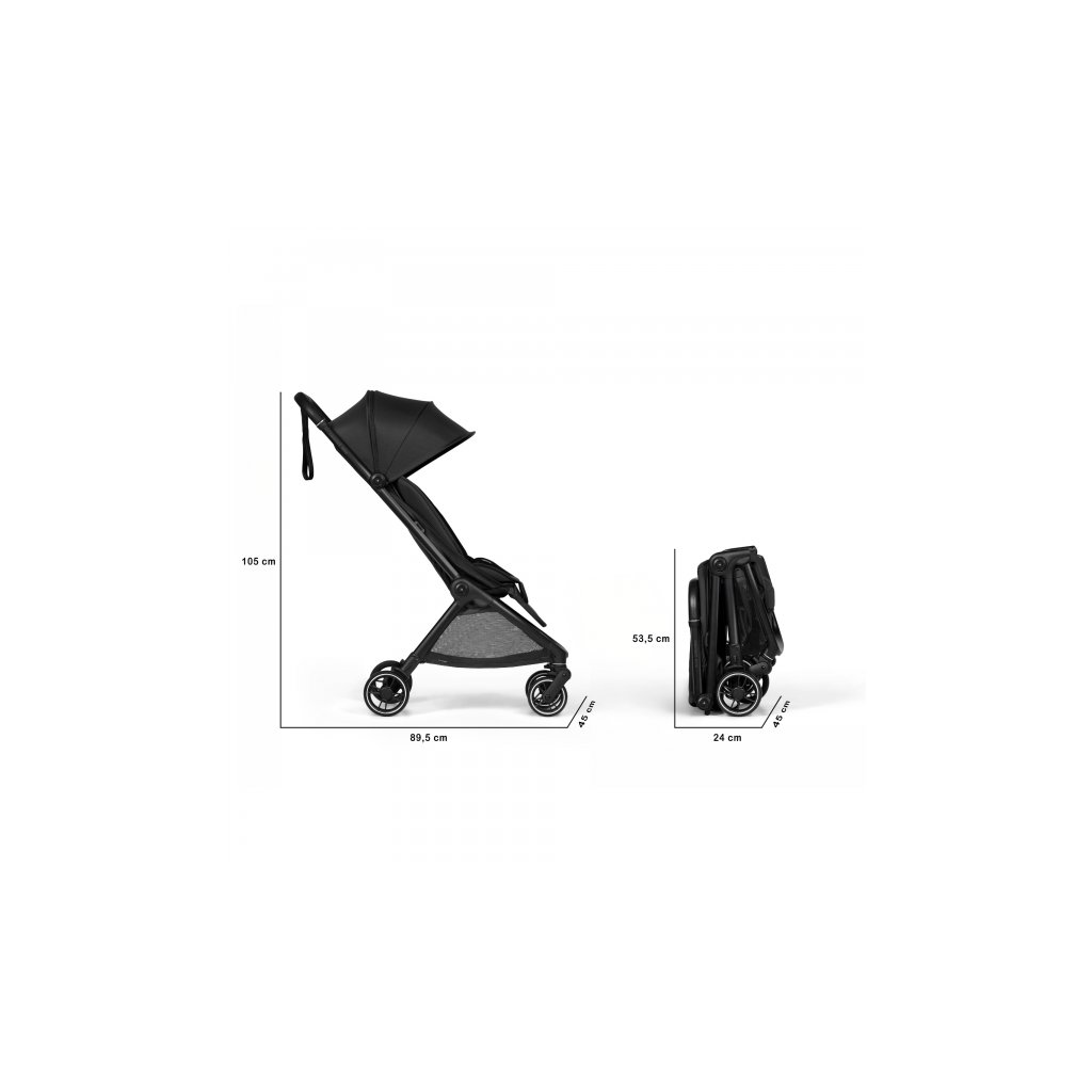 Kočík ľahko zložíte jednou rukou, po zložení sám stojí, takže sa s ním lepšie manipuluje na letisku, vo vlaku aj v reštaurácii. Pre ľahké prenášanie je súčasťou kočíka ramenný popruh a cestovná taška.