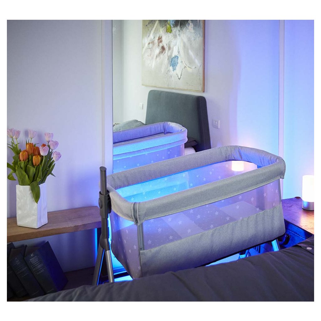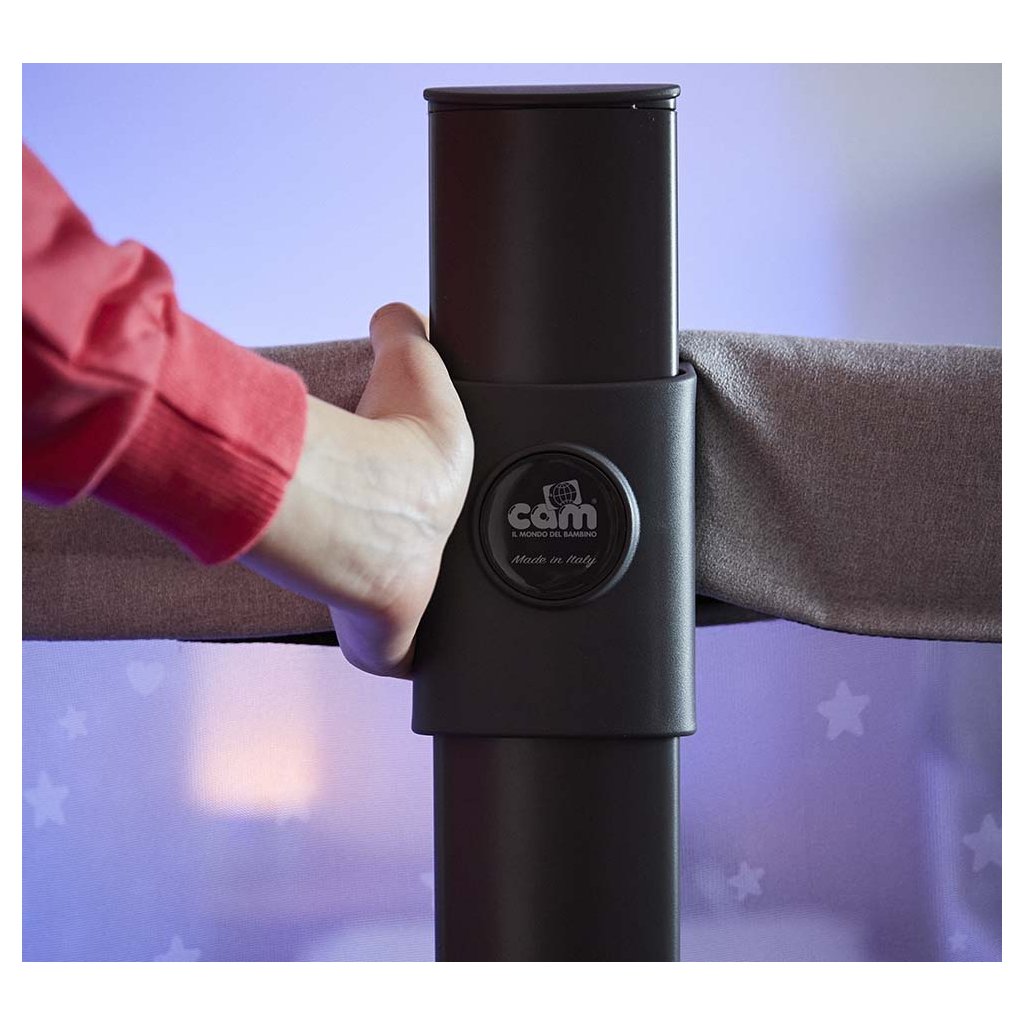 Vďaka odnímateľným bočniciam a možnosti polohovania do 8 polôh možno postieľku ľahko pripevniť k akejkoľvek posteli.