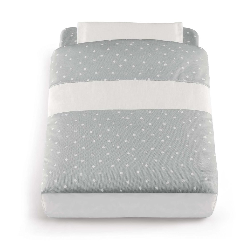 Súprava obsahuje: rám postieľky, matrac, bočnice, obliečku na vankúš a