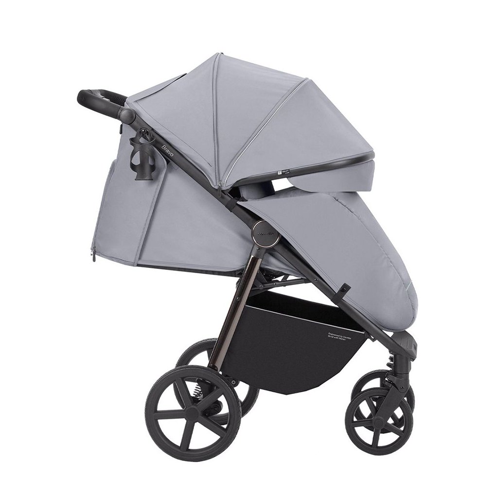 Obľúbený Bravo Plus so sviežim dizajnom upúta na prvý pohľad. Dizajn kočíka je charakteristický elegantným lemom na strieške a konštrukciou, ktorej povrchová úprava kombinuje matnú čiernu s tmavým chrómom. Kolesá s väčším priemerom sú zárukou komfortnej jazdy aj v náročnom teréne. Veľkorysá sedačka s vylepšenou konštrukciou opierky nôh ponúka dostatok priestoru pre spánok aj väčších detí. Samozrejmosťou je aj bohatá výbava, ktorá zaistí celoročné využitie kočíka.