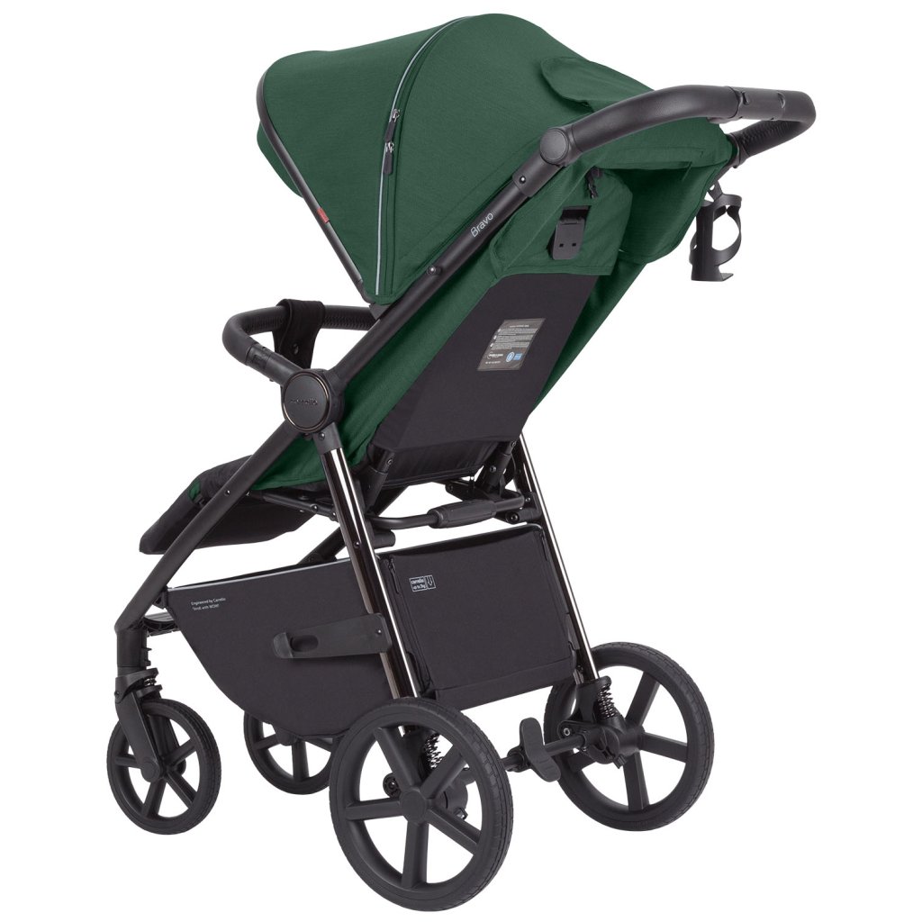 Obľúbený Bravo Plus so sviežim dizajnom upúta na prvý pohľad. Dizajn kočíka je charakteristický elegantným lemom na strieške a konštrukciou, ktorej povrchová úprava kombinuje matnú čiernu s tmavým chrómom. Kolesá s väčším priemerom sú zárukou komfortnej jazdy aj v náročnom teréne. Veľkorysá sedačka s vylepšenou konštrukciou opierky nôh ponúka dostatok priestoru pre spánok aj väčších detí. Samozrejmosťou je aj bohatá výbava, ktorá zaistí celoročné využitie kočíka.
