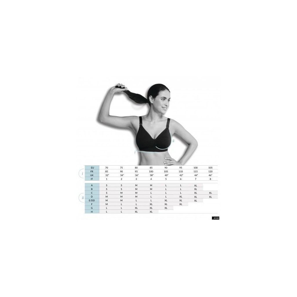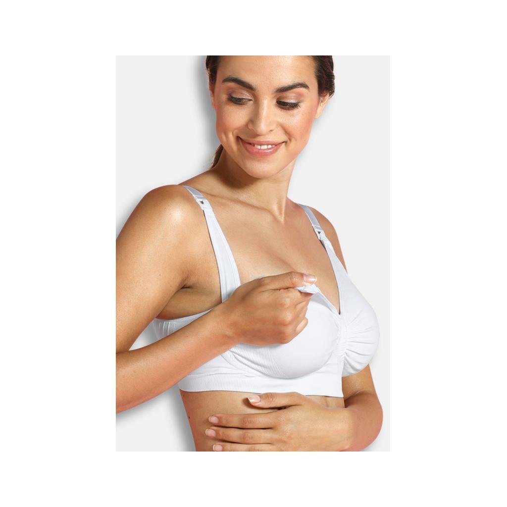 Bezšvová podprsenka z mikrovlákna s gélovou kosticou a s klipom pre jednoduché dojčenie. Navrhnuté v Dánsku na základe veľakrát ocenenej a obľúbenej bezšvovej podprsenky na dojčenie Carriwell.