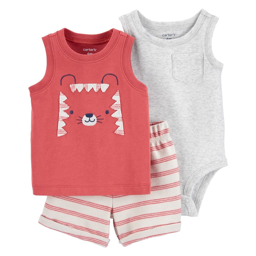 CARTER'S Set 3dielny body bez rukávov, tielko, kraťasy Red Tiger chlapec 12m