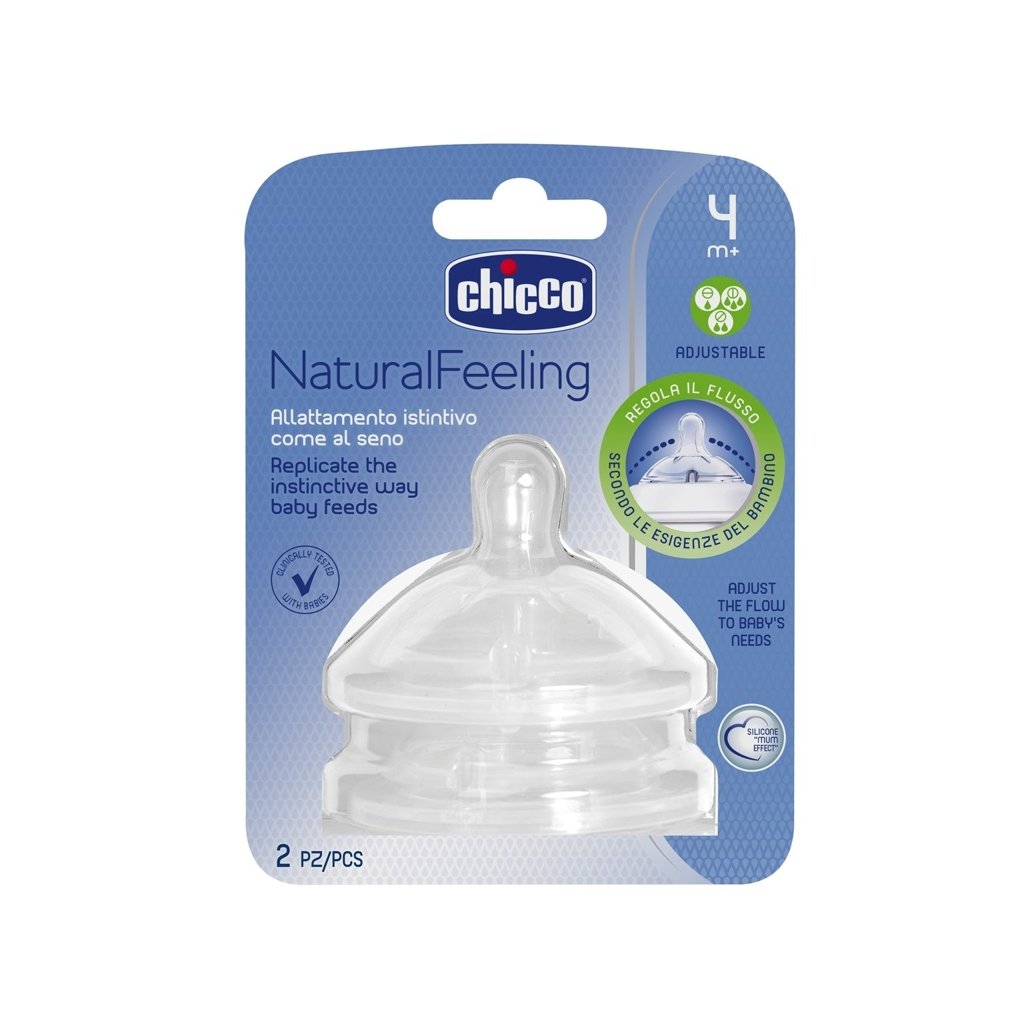 CHICCO Cumlík na fľašu Natural Feeling silikón nastaviteľný prietok 4m+ 2 ks