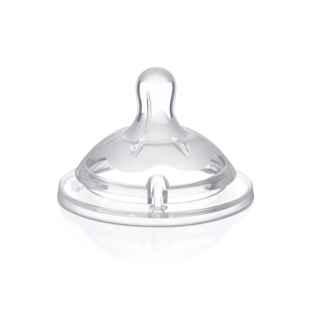 Tvarovaný cumlík z mäkkého silikónu podporuje pohodlnú a prirodzenú polohu pre novorodencov. Vďaka tvaru prsníka cumlík uľahčuje prechod medzi dojčením a fľašou už od prvých kŕmení. Dvojitý anti-kolikový ventil zabraňuje nežiaducemu prehĺtaniu vzduchu, a tým znižuje riziko boľavého bruška, vrackania či detskej koliky.