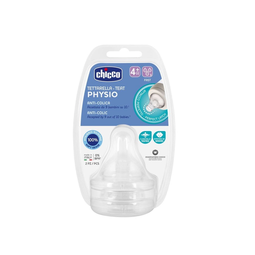 CHICCO Cumlík na fľašu Perfect Easy/Perfect 5/Well-Being fyziologický rýchly prietok 4m+ 2 ks