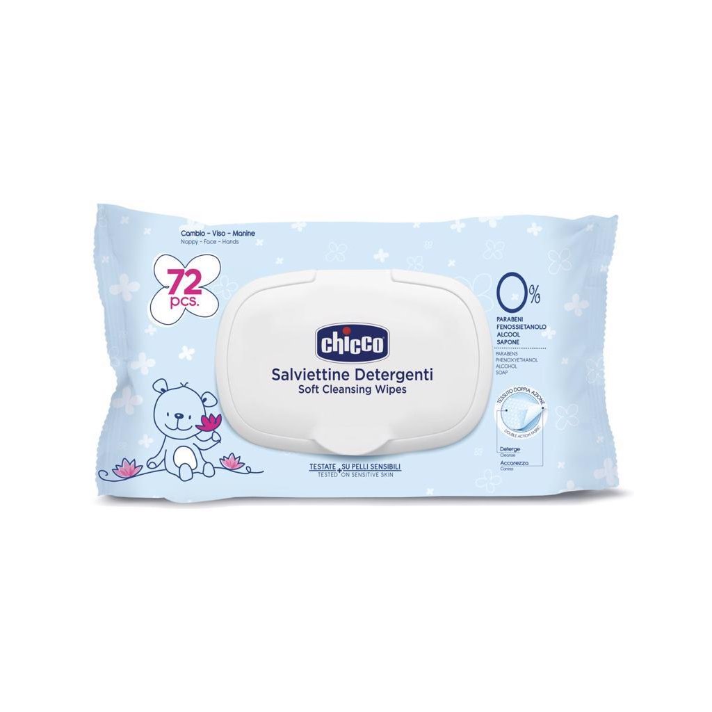Čistiace vlhčené obrúsky Chicco Salviettine Detergenti (Cleansing Wipes) dokonale vyčistia, upokoja a zvlhčujú, a to všetko jediným otrením vďaka inovatívnej dvojitej textílii s celulózou. Strana s mäkkými výstupkami pomáha hĺbkovo čistiť jemnú pokožku dieťaťa, zatiaľ čo hladká strana pohladí a jemnučko odstráni akékoľvek zostávajúce nečistoty.