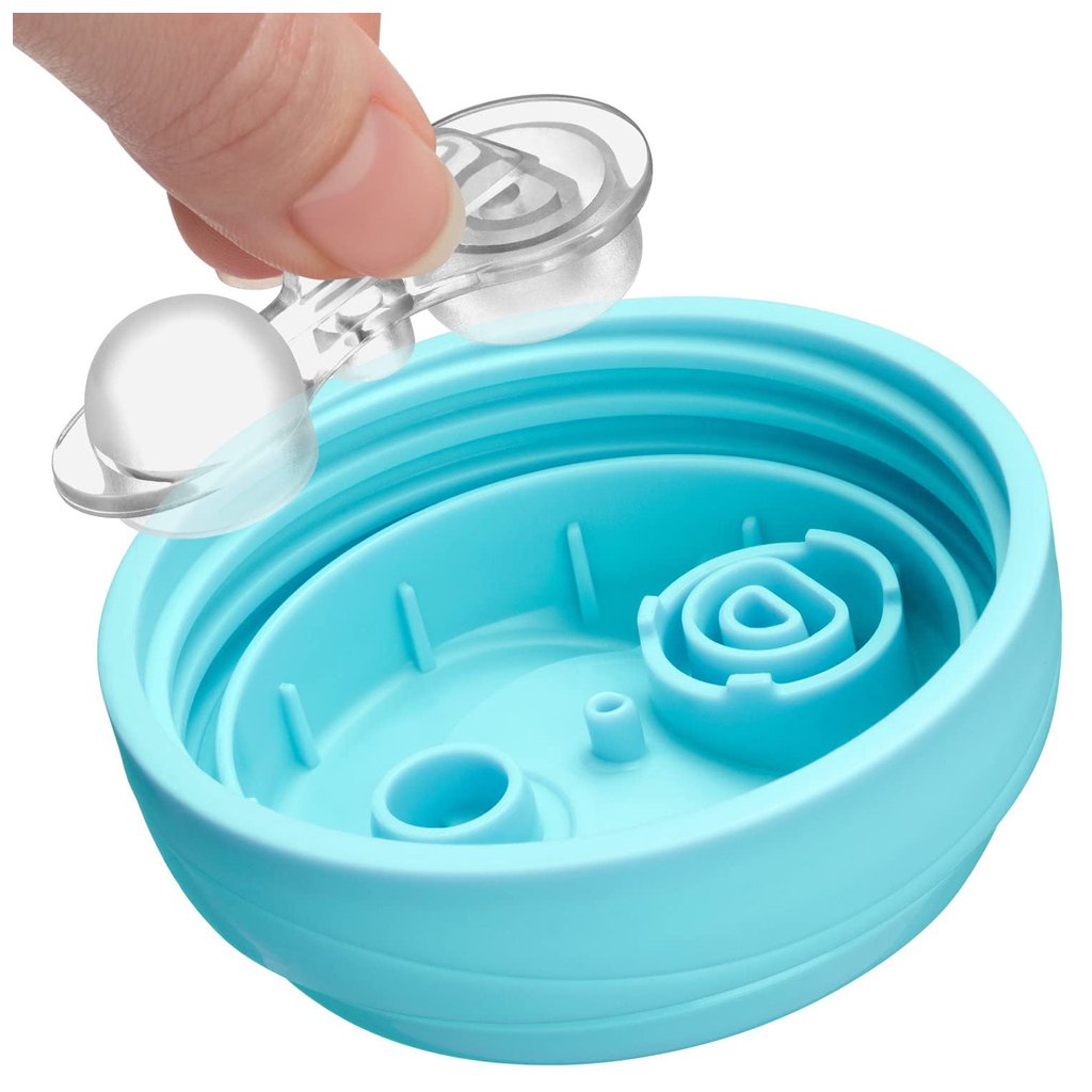- úzky tvarovaný náustok napodobňujúci hranu pohára pomáha dieťaťu pri prechode k pitiu s otvoreného pohára