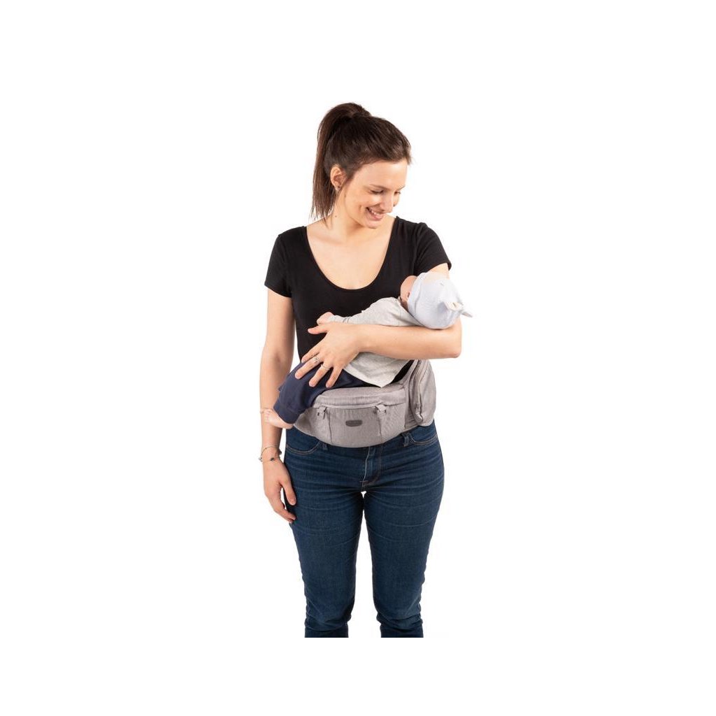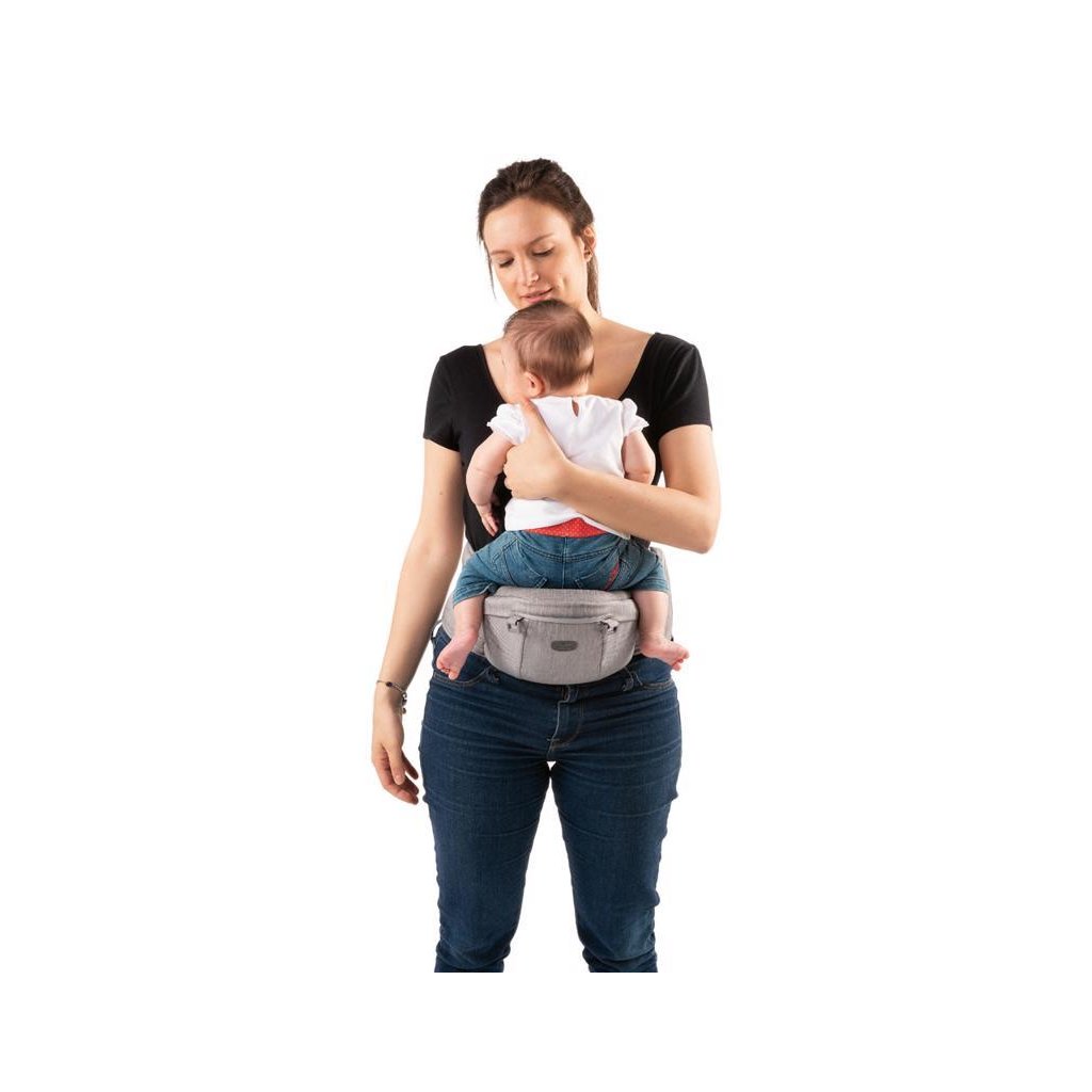 Spevnená základňa bez nosiča slúži ako rozšírenie bokov rodiča. Ideálne v prípade, keď držíte dieťa jednou rukou. Základňa pomáha rozložiť váhu dieťaťa a zároveň rodičom držať správnu polohu tela.